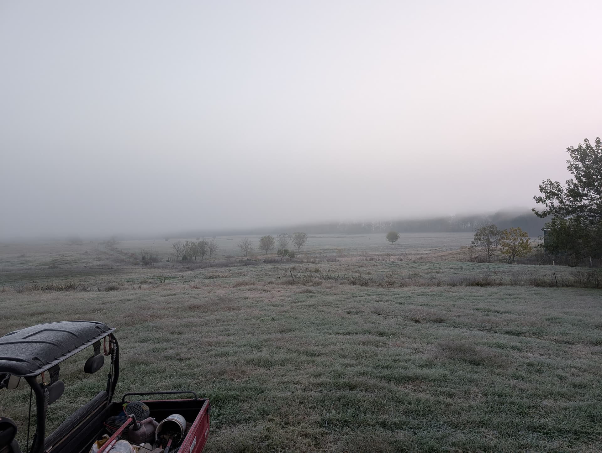 Had a couple of frosts last week; enough to kill tender regrowth of Johnson grass in the pastures, but not enough to nuke the crabgrass or tomatoes/peppers growing up against the south wall of the house.