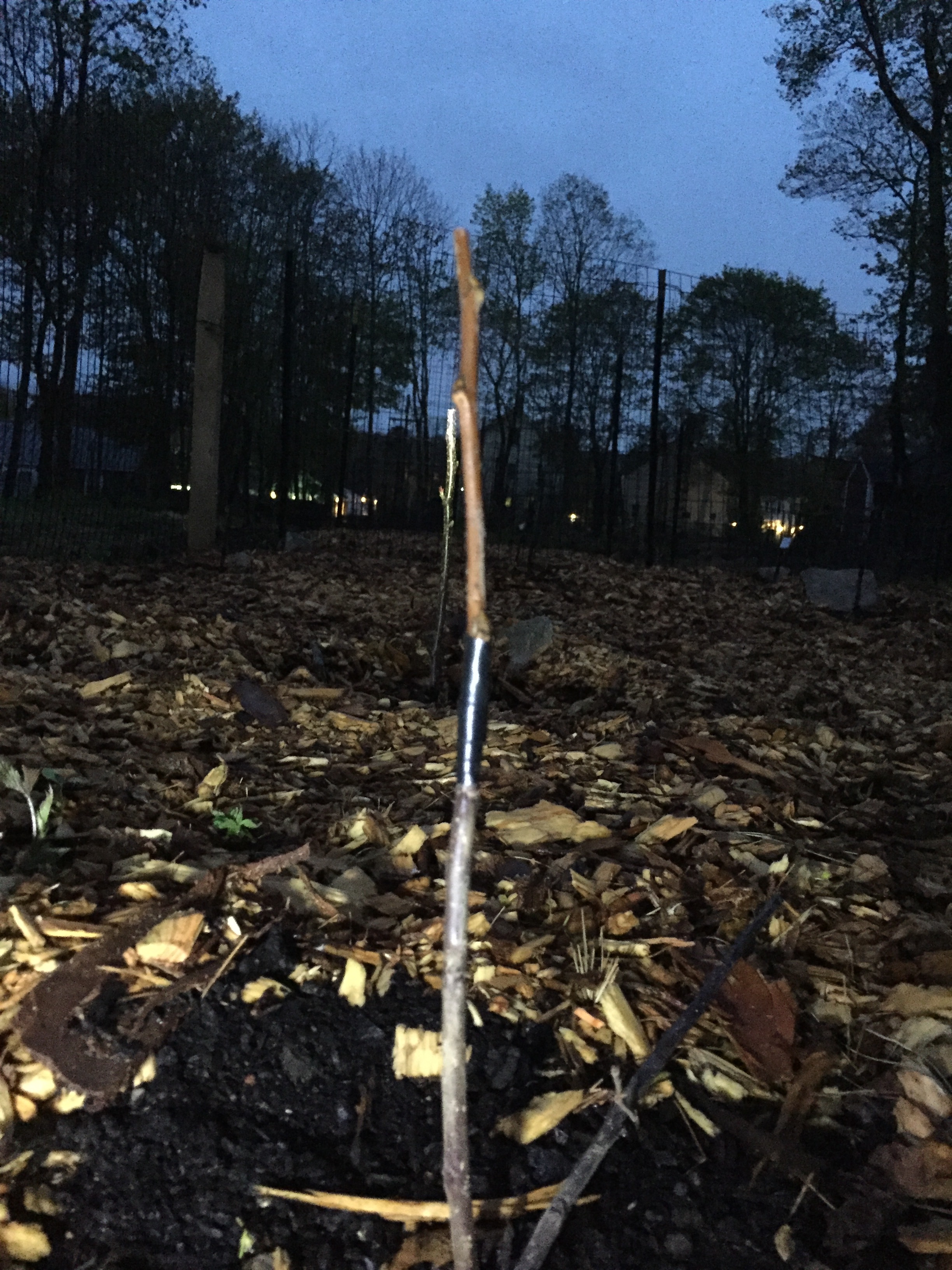 I was doing a bunch of apples. I think that one was Canadian Strawberry. I have a patch of bud 9 rootstock that’s a grid of 4 plants wide by 6 plants long, with 4 feet between each tree. So 24 trees.