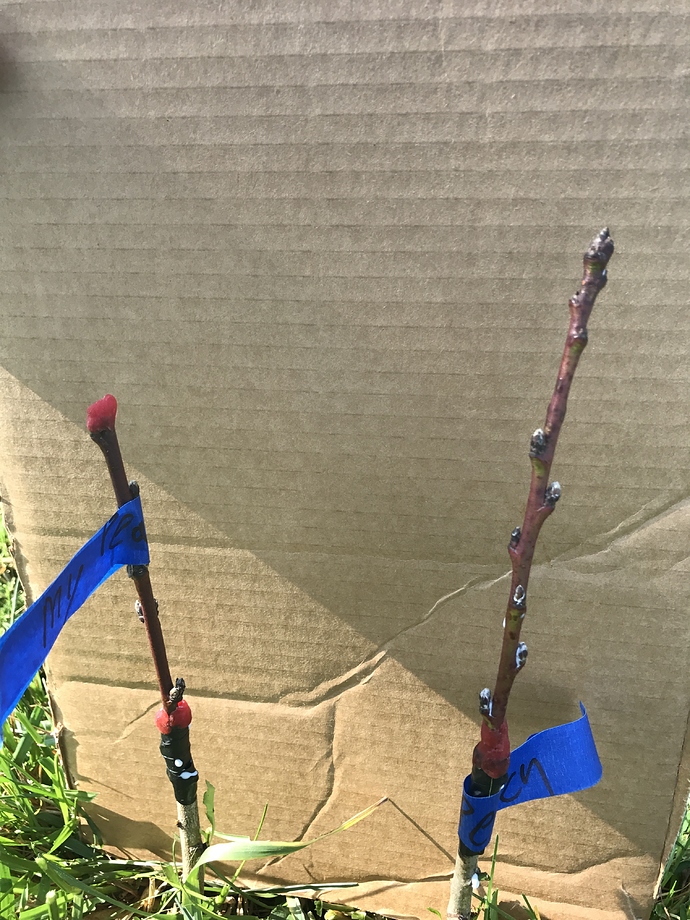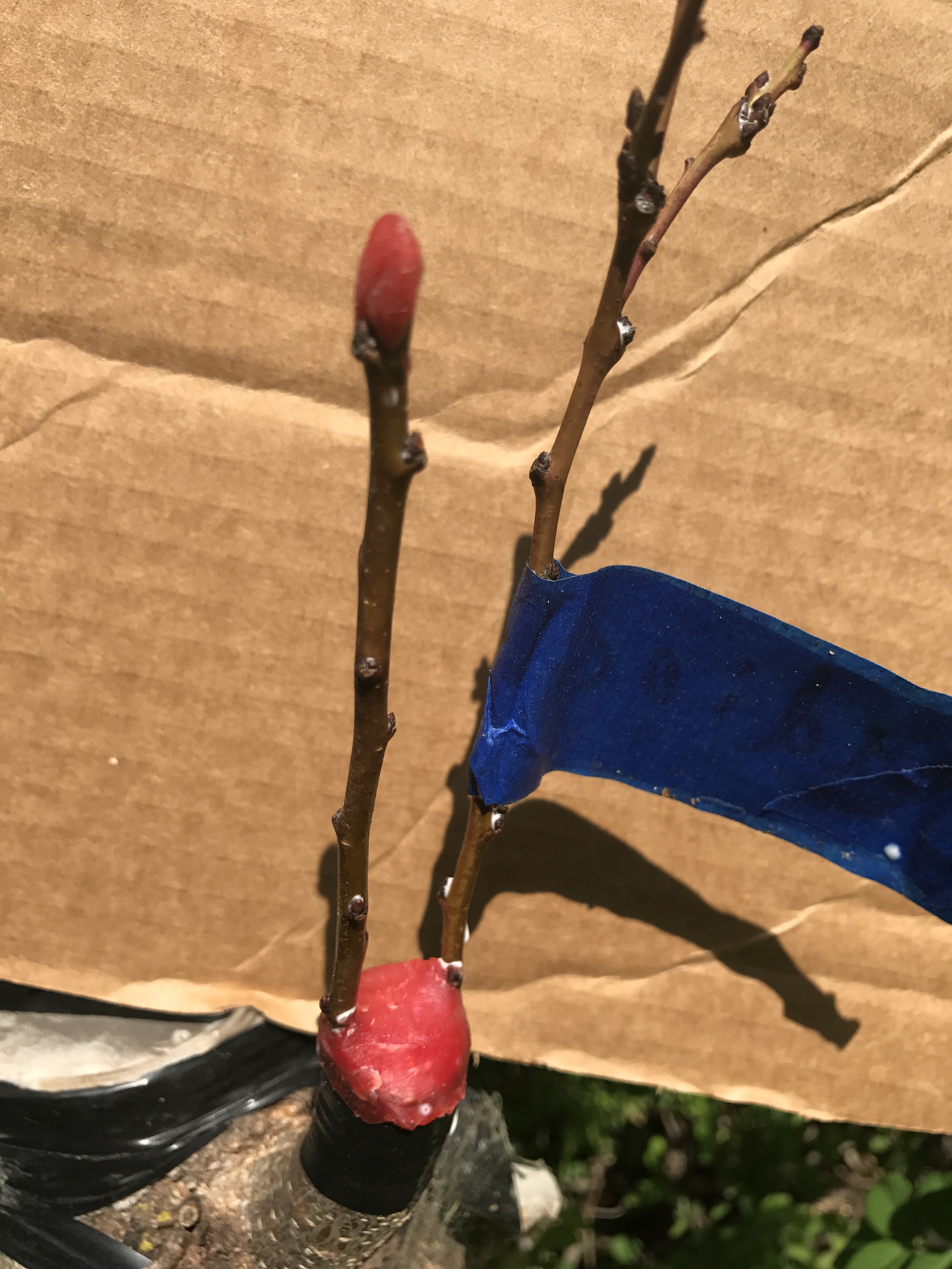 Posting pics of two of my bench grafts. Can someone declare these dead or tell me if there’s still hope. I’m pretty sure the scions are dead. Grafted on March 11. No signs of life yet. I scratched the bark and it does show some green. Not sure what to make of it. If the rootstock sill alive why isn’t it leafing out yet? Everything else in the yard is all green.
