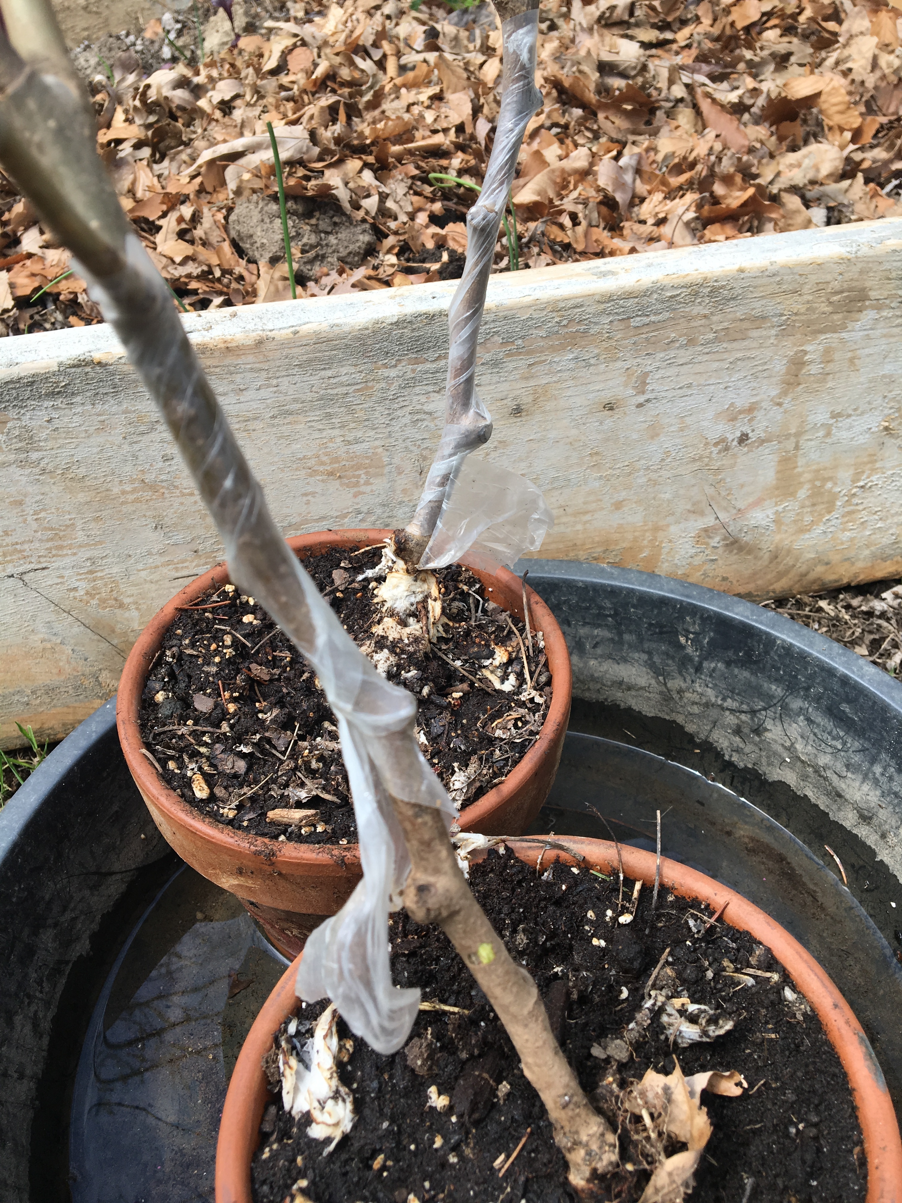 It is best for the scions to be dry so I’ll take them out of the 'frig, let them come to room temp and dry off the condensation before waxing. Ow the wax won’t stick as well. If the wax pops off, I’ll just parafilm ‘in situ’.