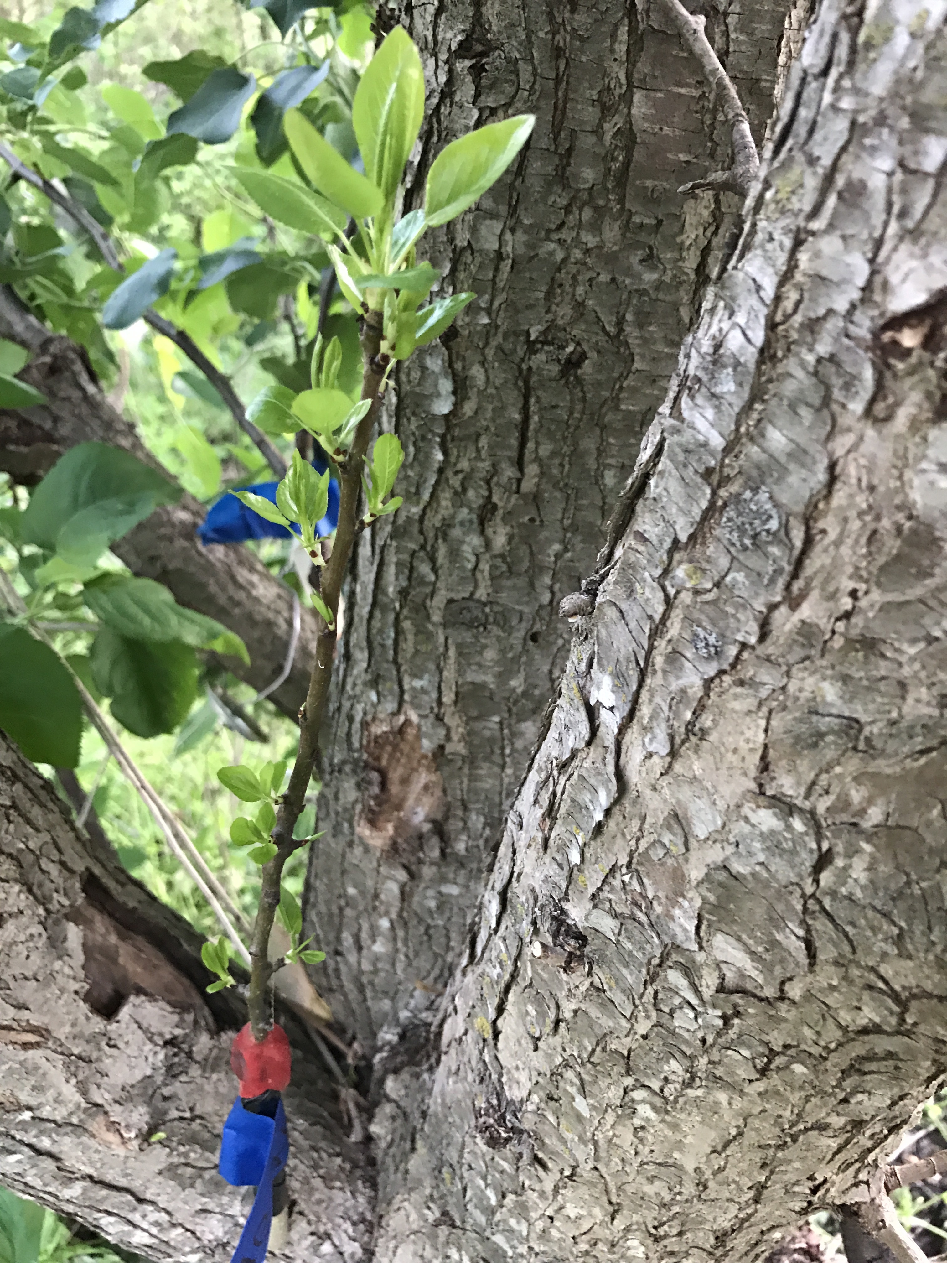 Here is my first success at spreading the joy of multi-grafted apple trees.