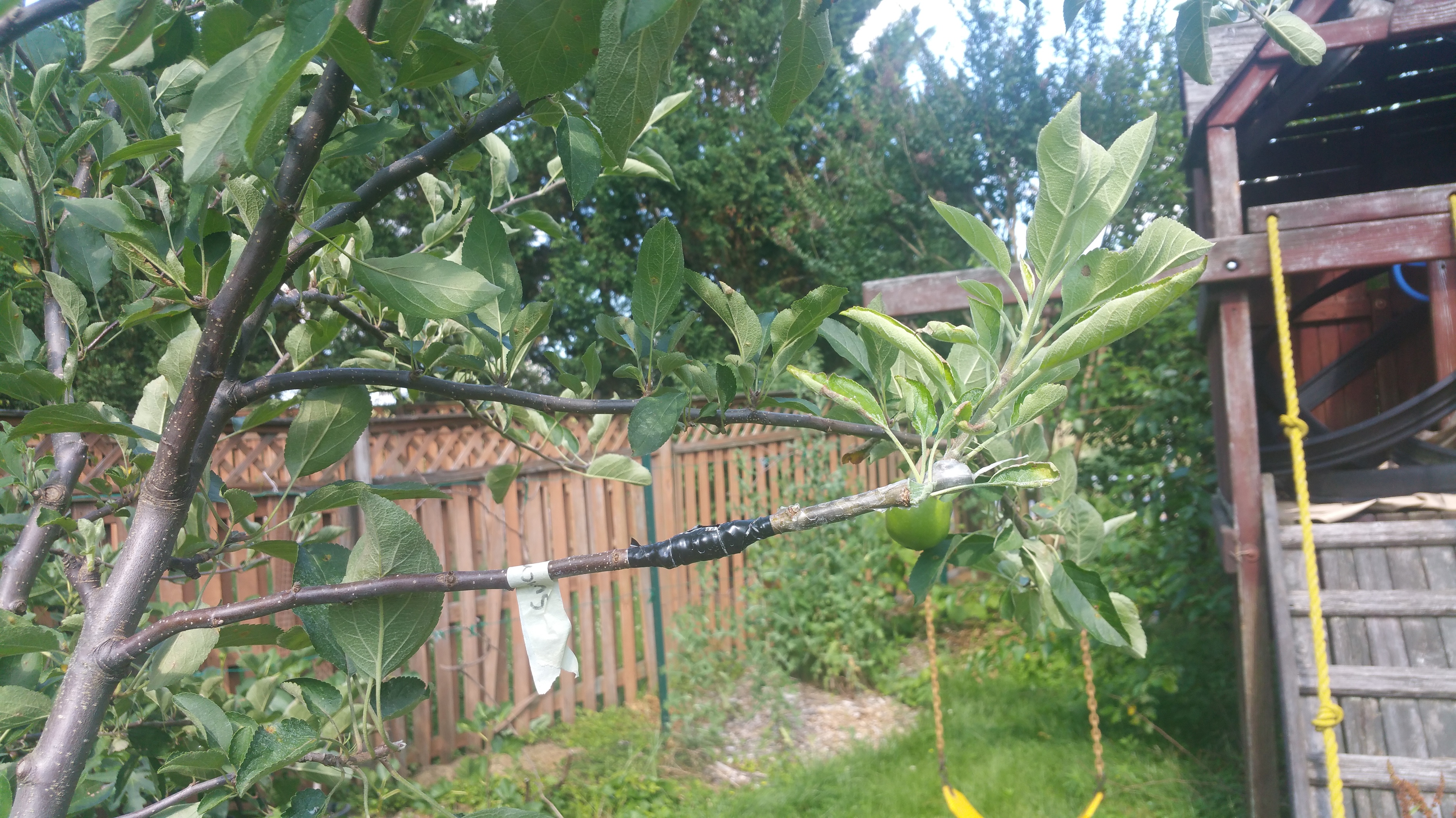 Final count for this year: apples are one each for Mere Pippin & Maiden Blush (third try in as many years to get MB going); two successful grafts of Twenty Ounce. All on Geneva 30.