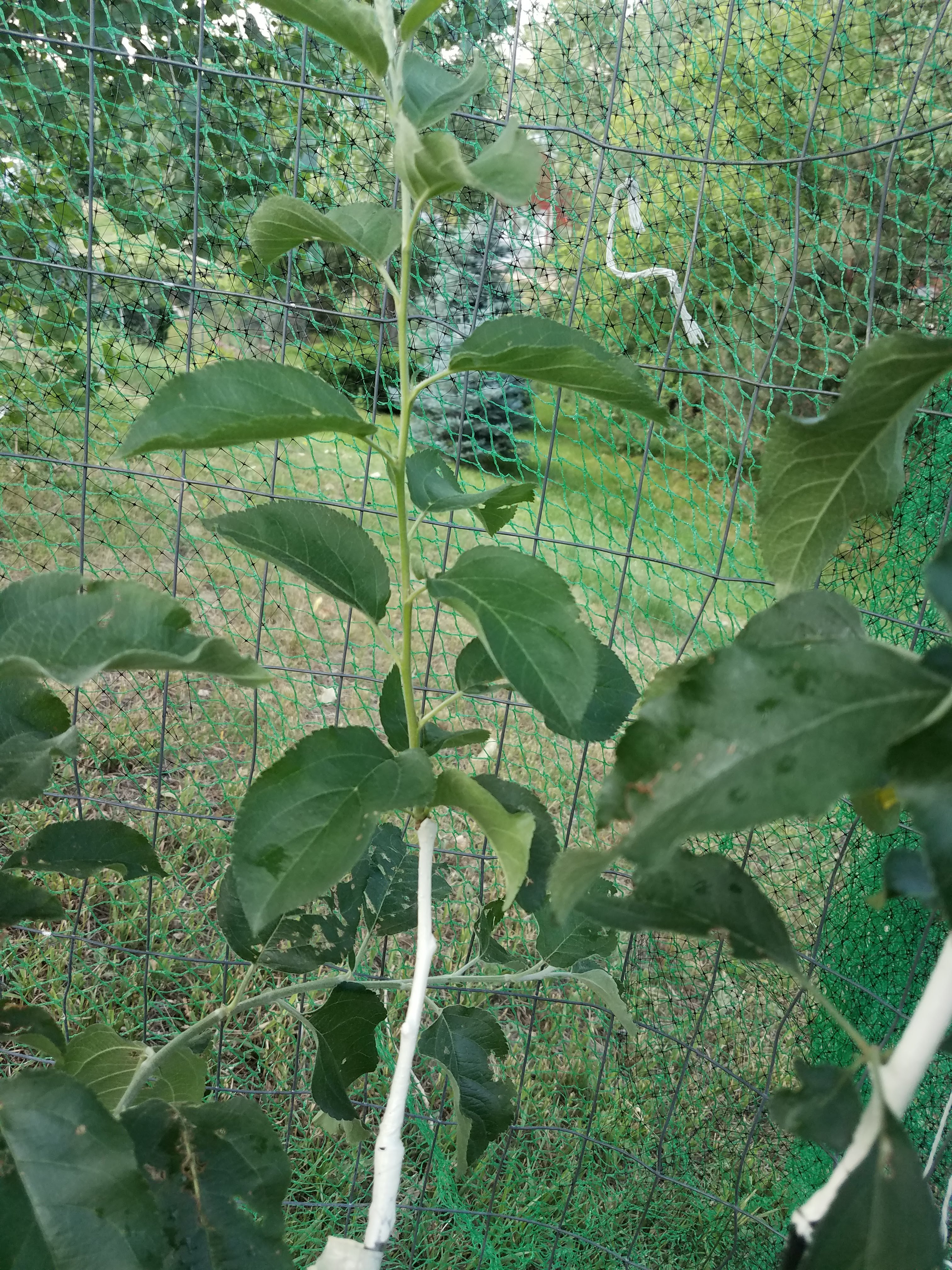 While kneeling and cheering on the growth of two apple grafts made this season, (done daily this past week - blush, blush) I wondered why one of the plum root stocks had so few leaves.