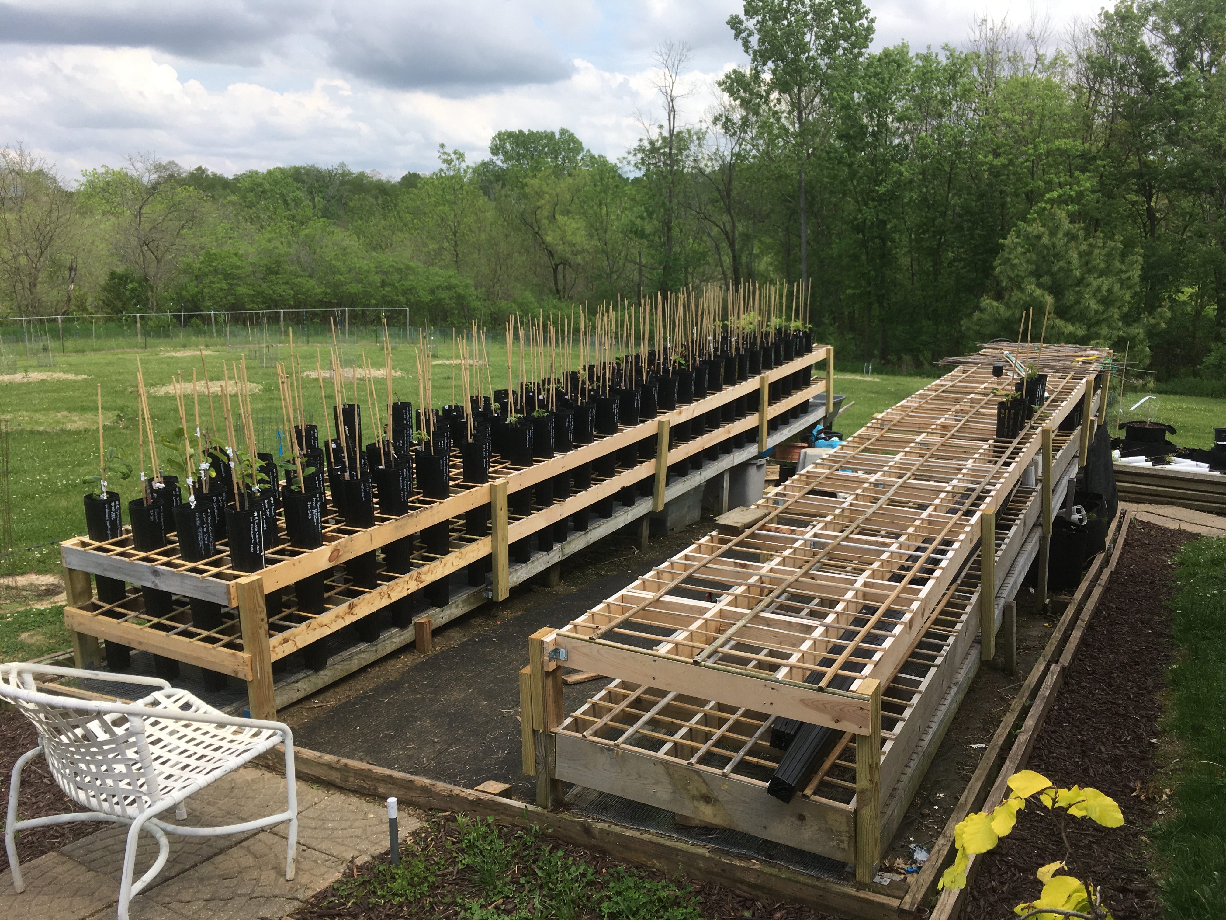 From Yesterday. These are the bareroot’s I did using a hot callus pipe this winter. Hickory, hican, pecan = maybe 95% success. Anything on walnut pretty much 0% but probably 5-8%. I wonder if black walnut being the rootstock couldn’t handle the dampness of being wrapped in towels and bagged with plastic after. Walnuts won’t grow where it’s too moist. Persimmons, excellent. Pawpaws, excellent. Very good results. So 173 grafts that came from my refrigerator as I grafted on the pipe, they were then placed in a refrigerator being dormant still and 2-3 months later I removed them (still being dormant) - (unwrapped the bud strips/tape for confirmation of a successful to be POTTED) and have been potting them up. Next are my potted grafts that also were done using a hot callus pipe. Dax