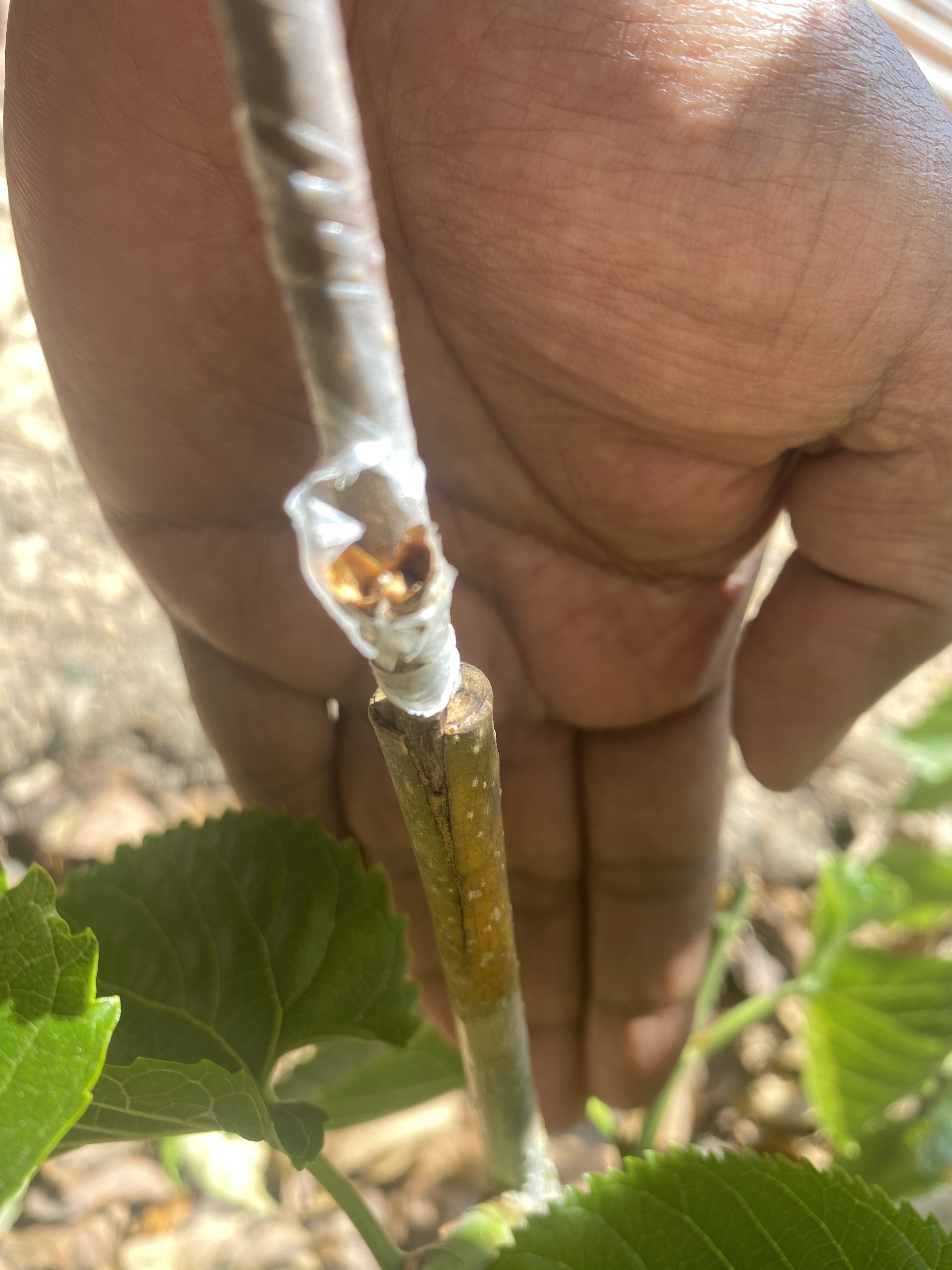 One of my mulberry grafts (grafted on Feb 20) leafed out and started growing but suddenly the leaves started developing pale color and one of the buds on the scion dried out. I unwrapped the graft and while there is callus formation (I think) on one side, the other side seems drying out.