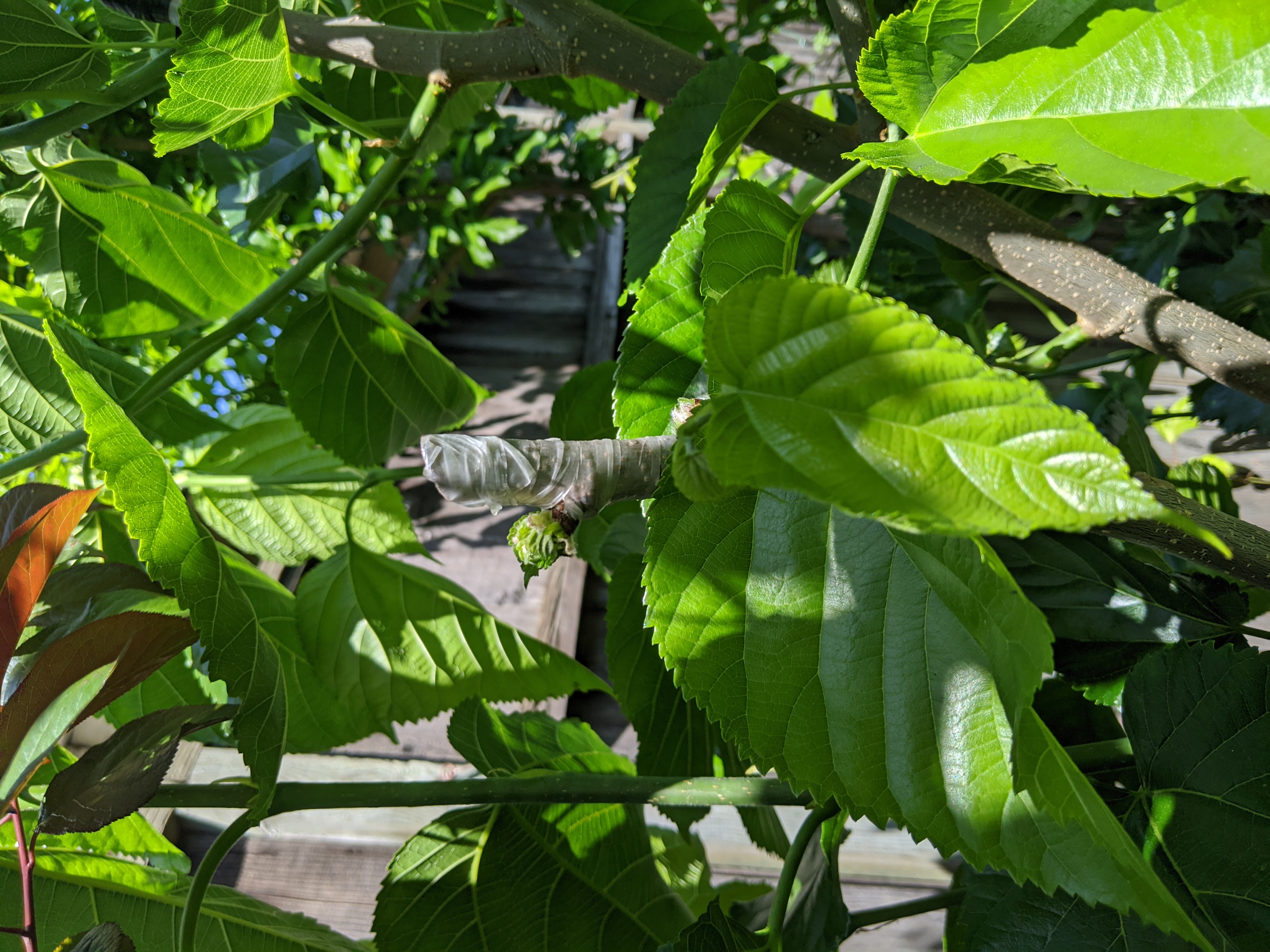 Grafted a few mulberries I picked up at the scion exchange at emma prusch. I was not entirely sure they would take given the mixing of alba, negra and macroura. All of them seem to have taken. The parent is probably a pakistan. The scions are wolfskill’s varieties, i stopped labeling at the exchange due to the crush of people. It’s more fun to see what fruit shows up a year or two later and then try to reverse id.