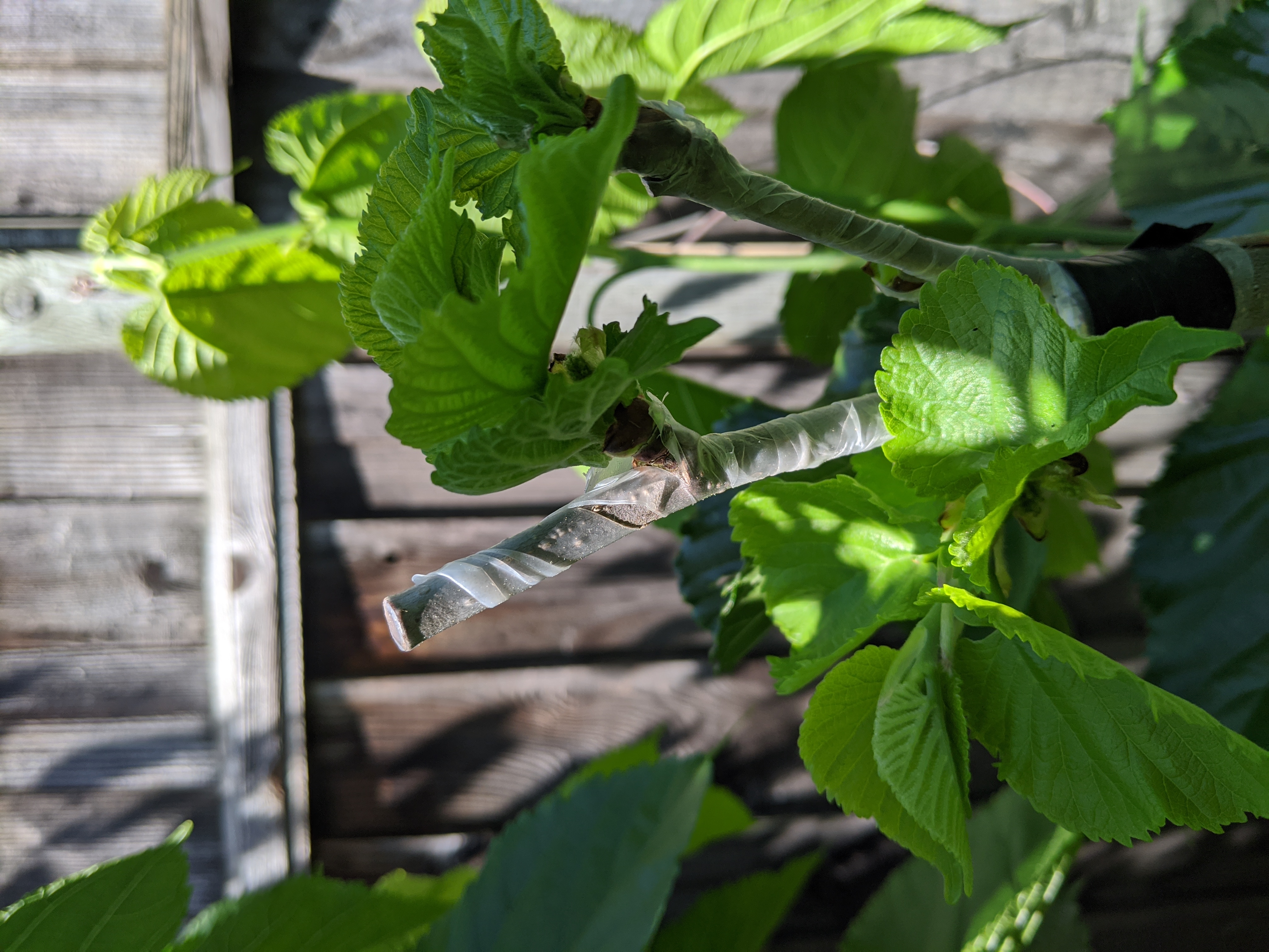 Ended up with nice strong growth on Orange Red and Redhaven, but Indian Free sputtered and I re-grafted. If there’s one thing I’ve learned so far, it’s that if the graft feels a little loose when you wrap it, it probably is. All my known failures were a little bit floppy. I thought holding it carefully in position until it was wrapped tightly would help, but apparently not…