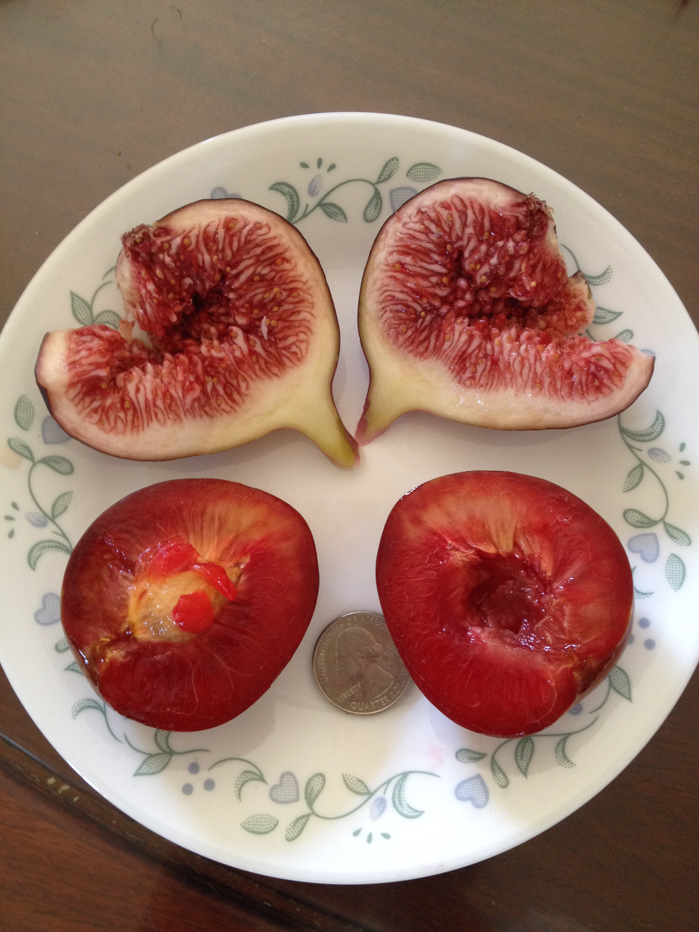 Panache (Tiger) fig: I picked one because the eye was a little open There was no milky sap at the stem end. It was surprisingly good: firm, moist, and sweet, no wonder the squirrels went nut.