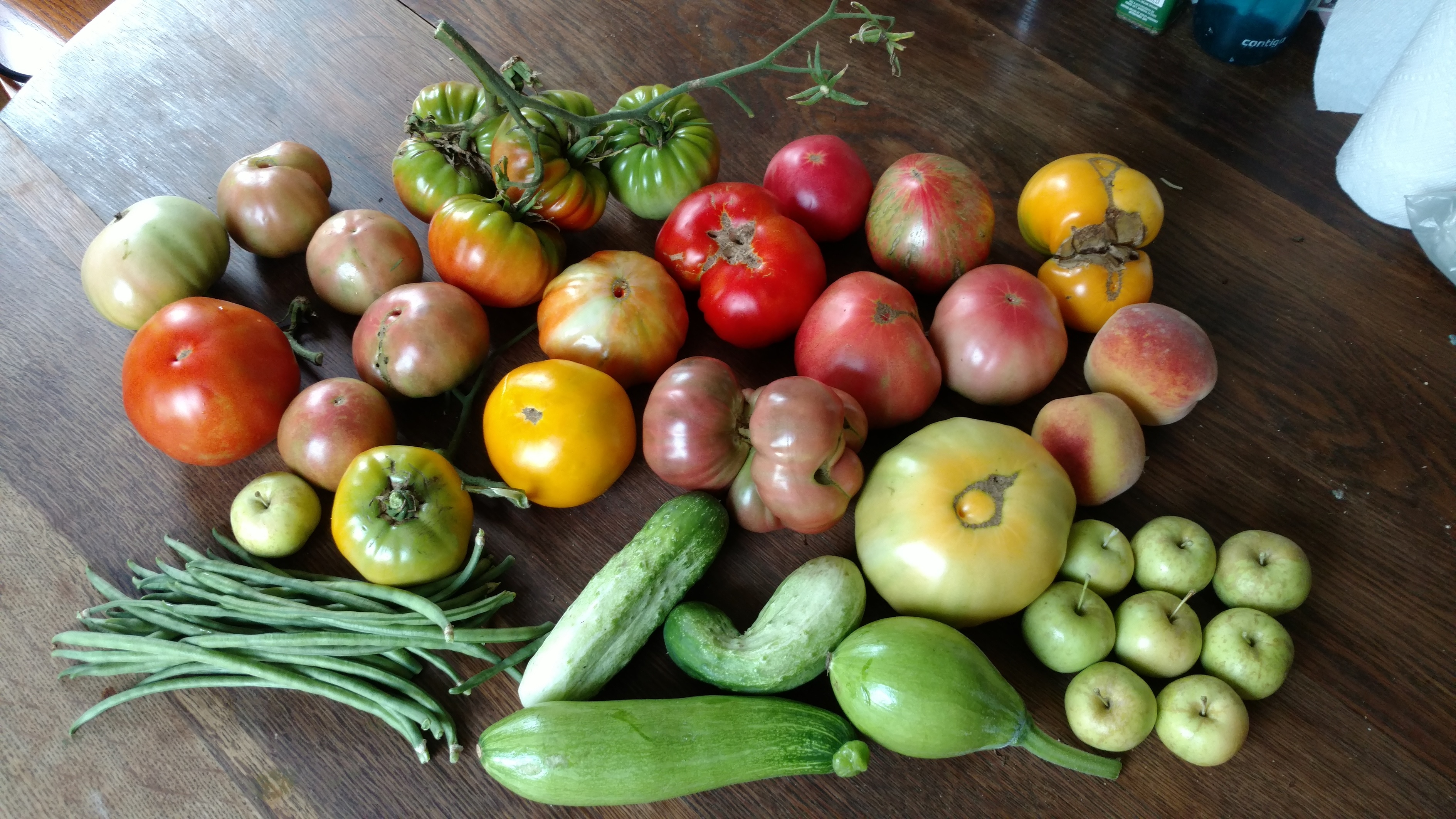 Veggies, including a southern pea grown for snaps called whippersnapper and a few types of Korean zucchini. A few contender peaches and some Chestnut crab apples. Scion wood for Chestnut is from GRIN, but they don’t look as red as most I see, but seeds are brown and they taste sweet and ripe.