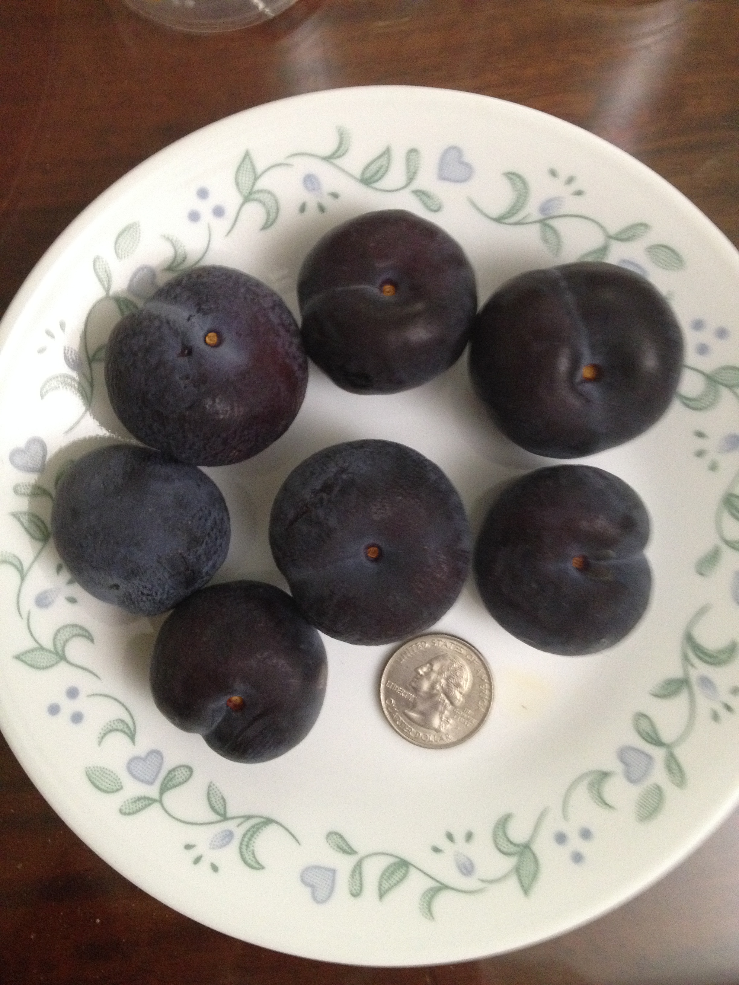 Nubiana plums: the long heat wave makes them smaller than last year. The inside is a little dry but good and sweet, the skin is not sour, and the pit is tiny. I actually like the small size fruits that leave room for tasting something else.