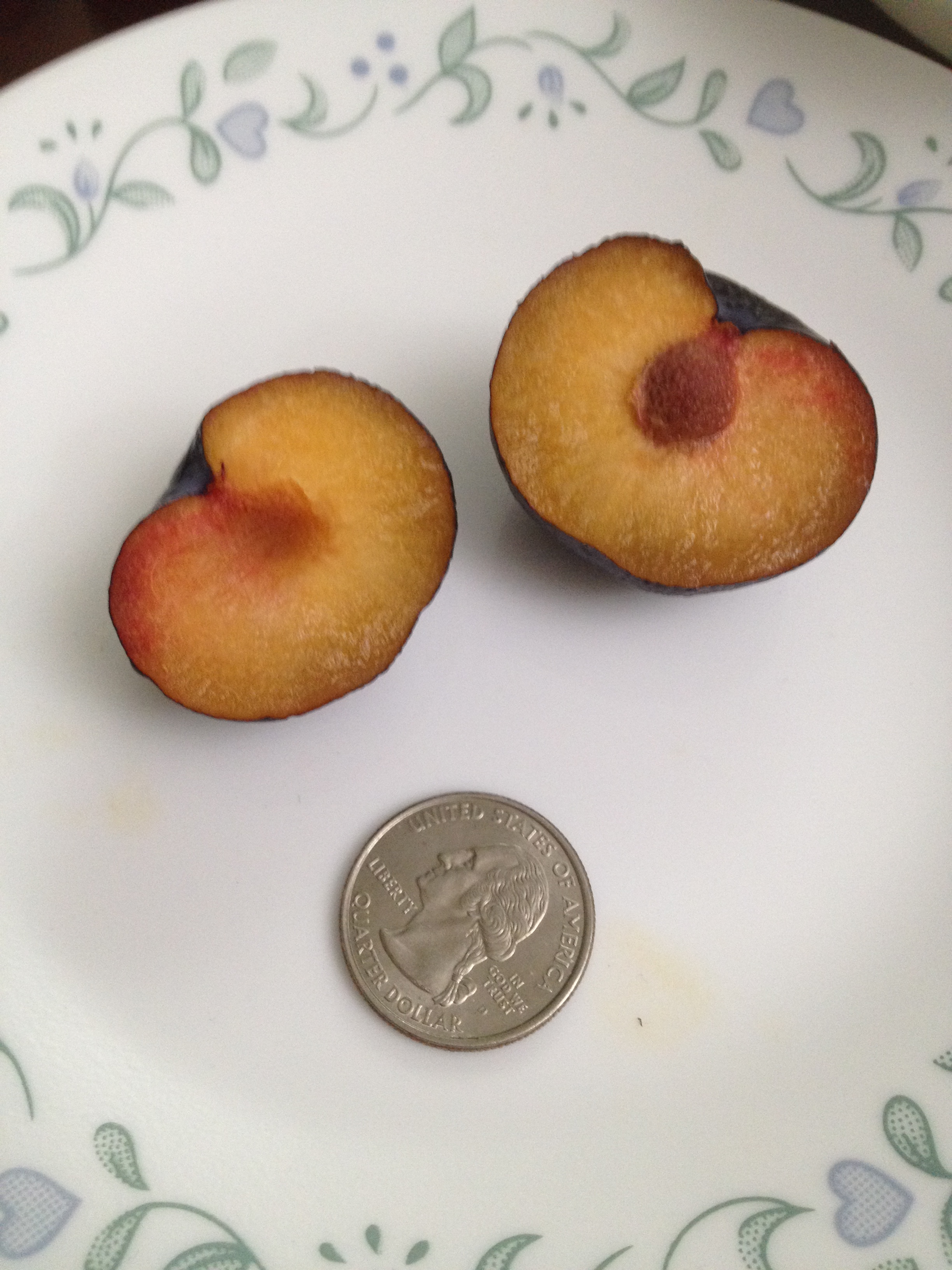Emerald Beaut plum (left) vs Emerald Drop pluot (right)