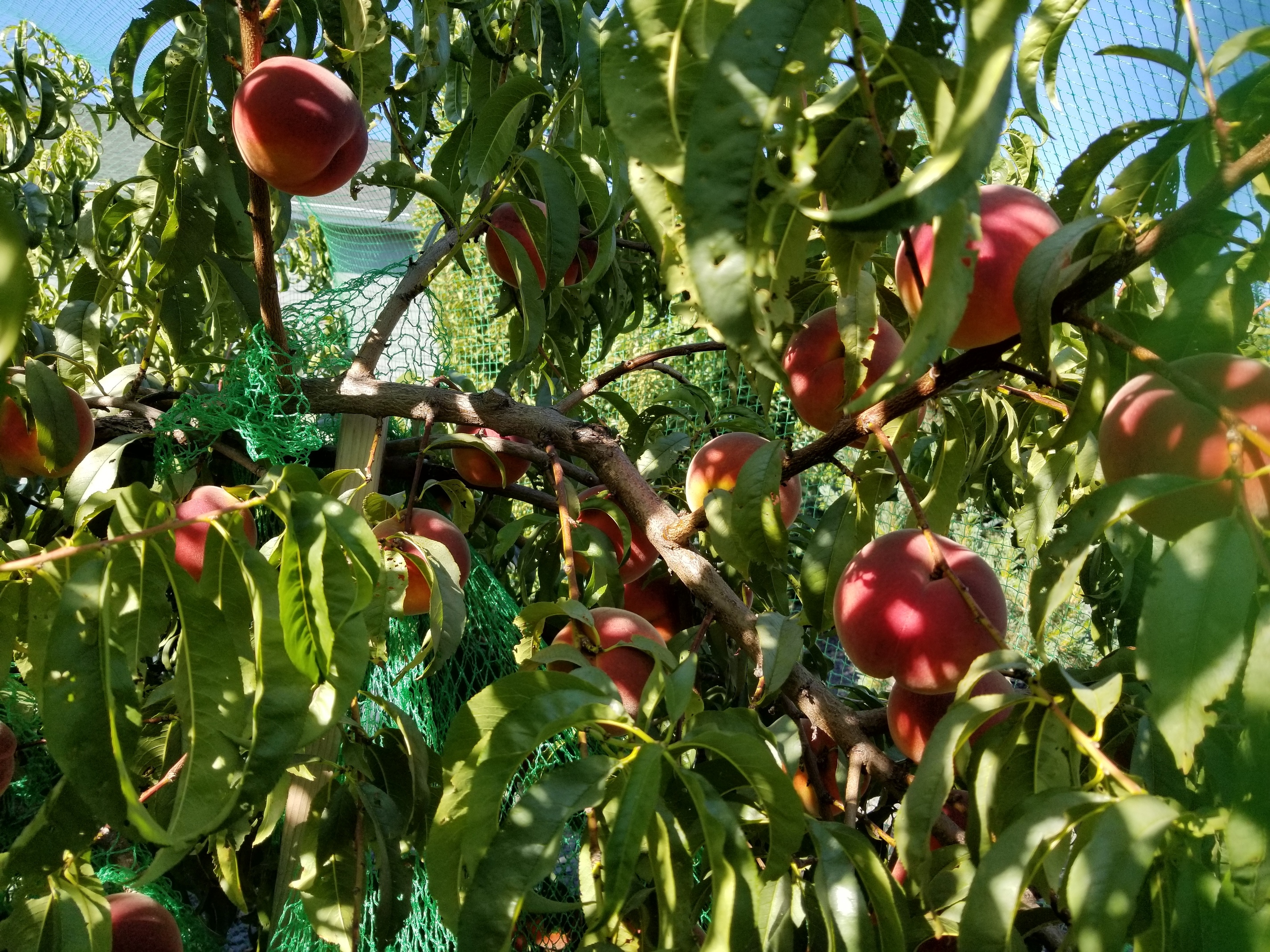Got the PF24C tree netted yesterday. Birds were starting to get after the peaches. Still about two weeks to go before they are ripe. Took two 30x30 nets.