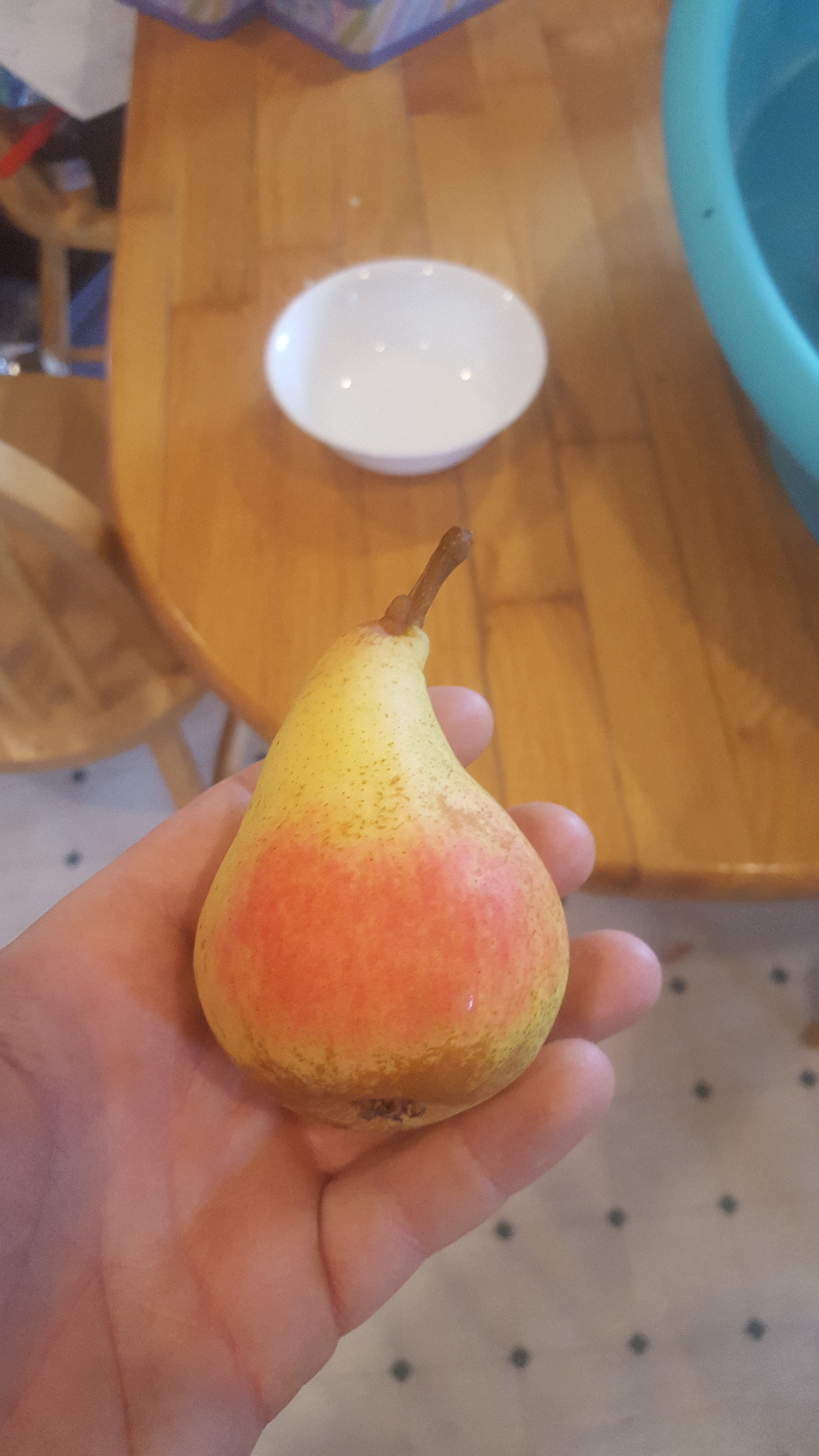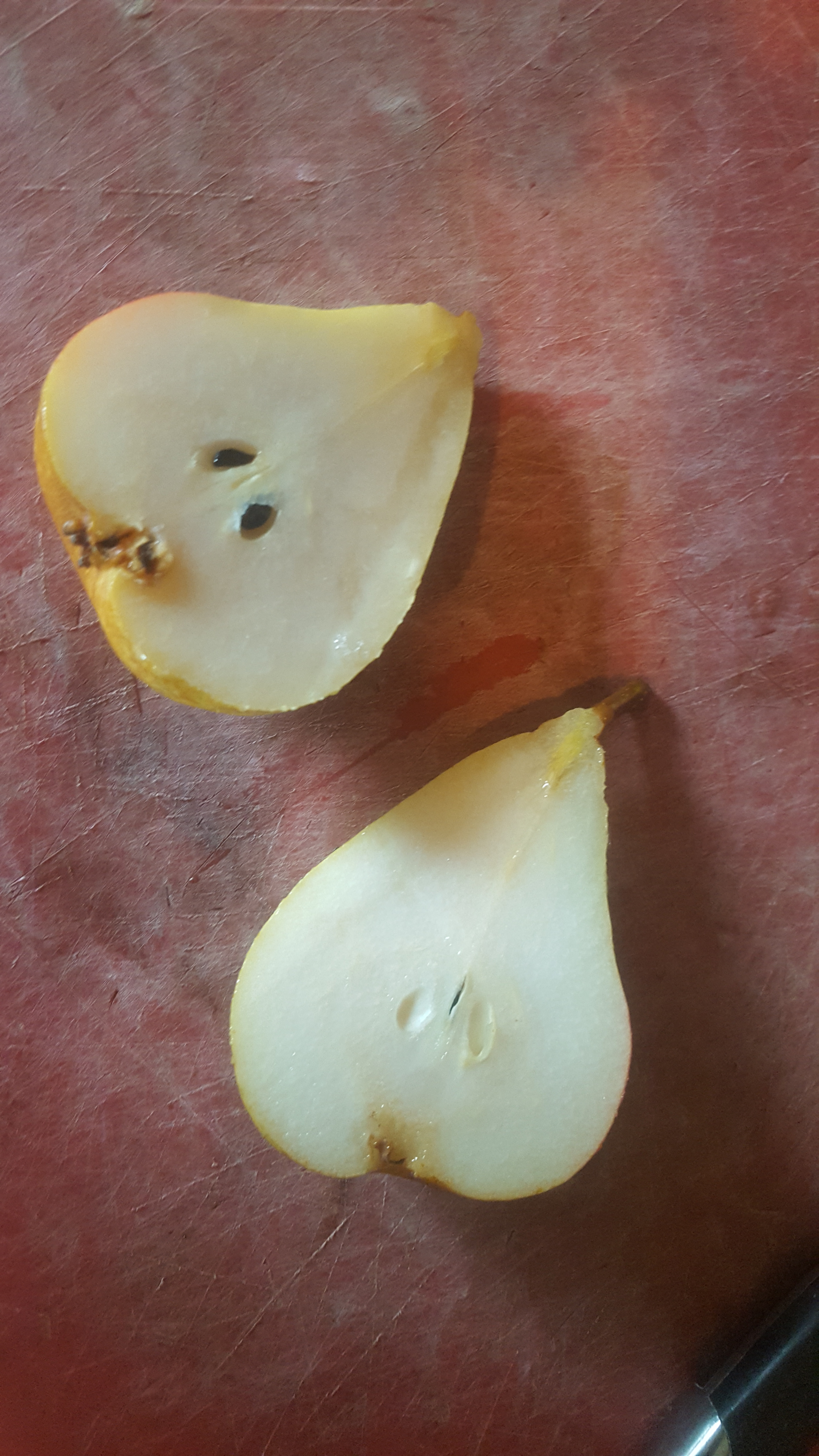 One and only orcas pear after 1 week in fridge very fine fleshed bartlett type but with a bit thicker skin…delicious!