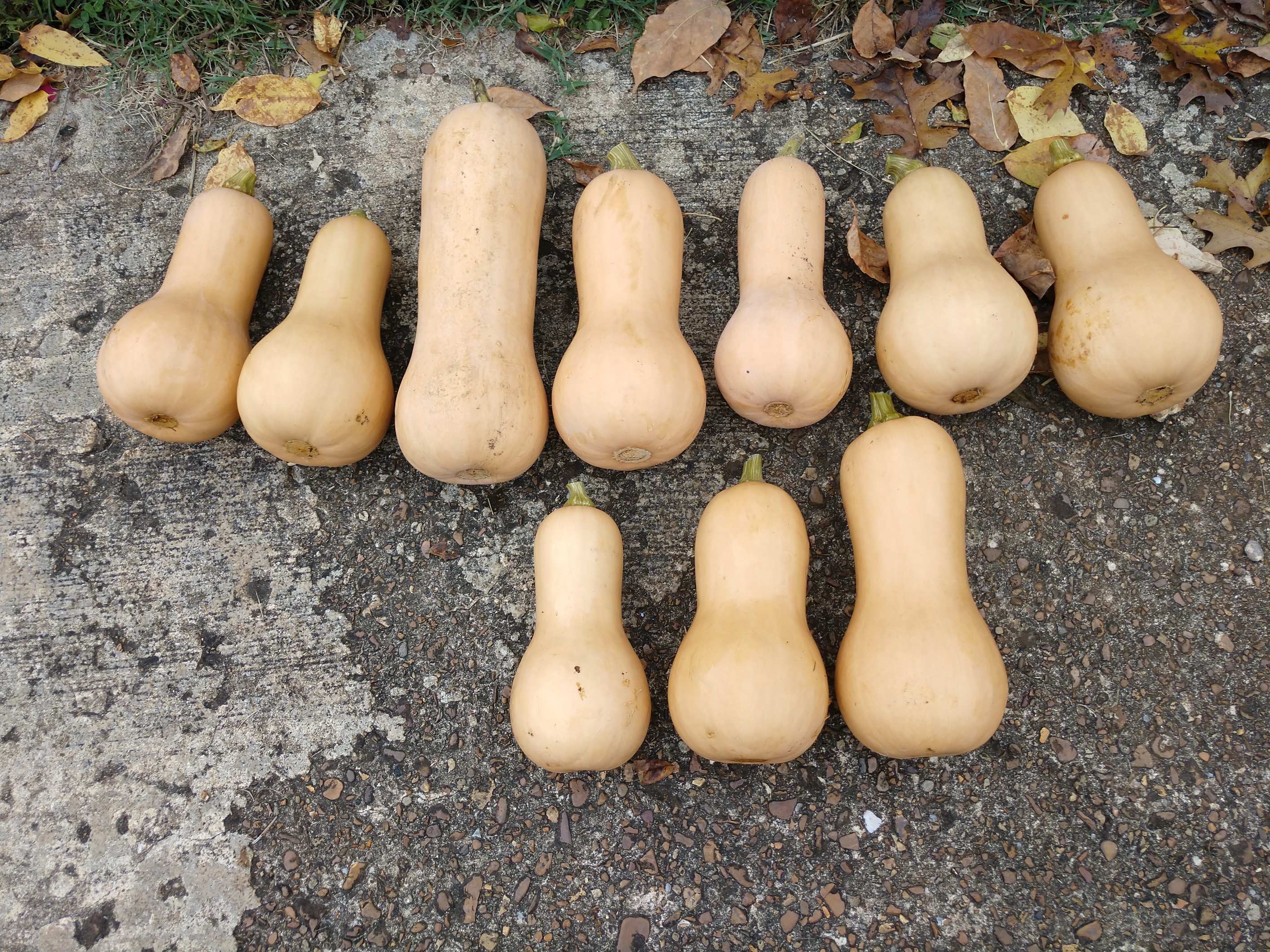 Butternut squash, they were volunteers from kitchen waste. For a couple of months I pulled them up. Finally I left them alone and they rewarded me.