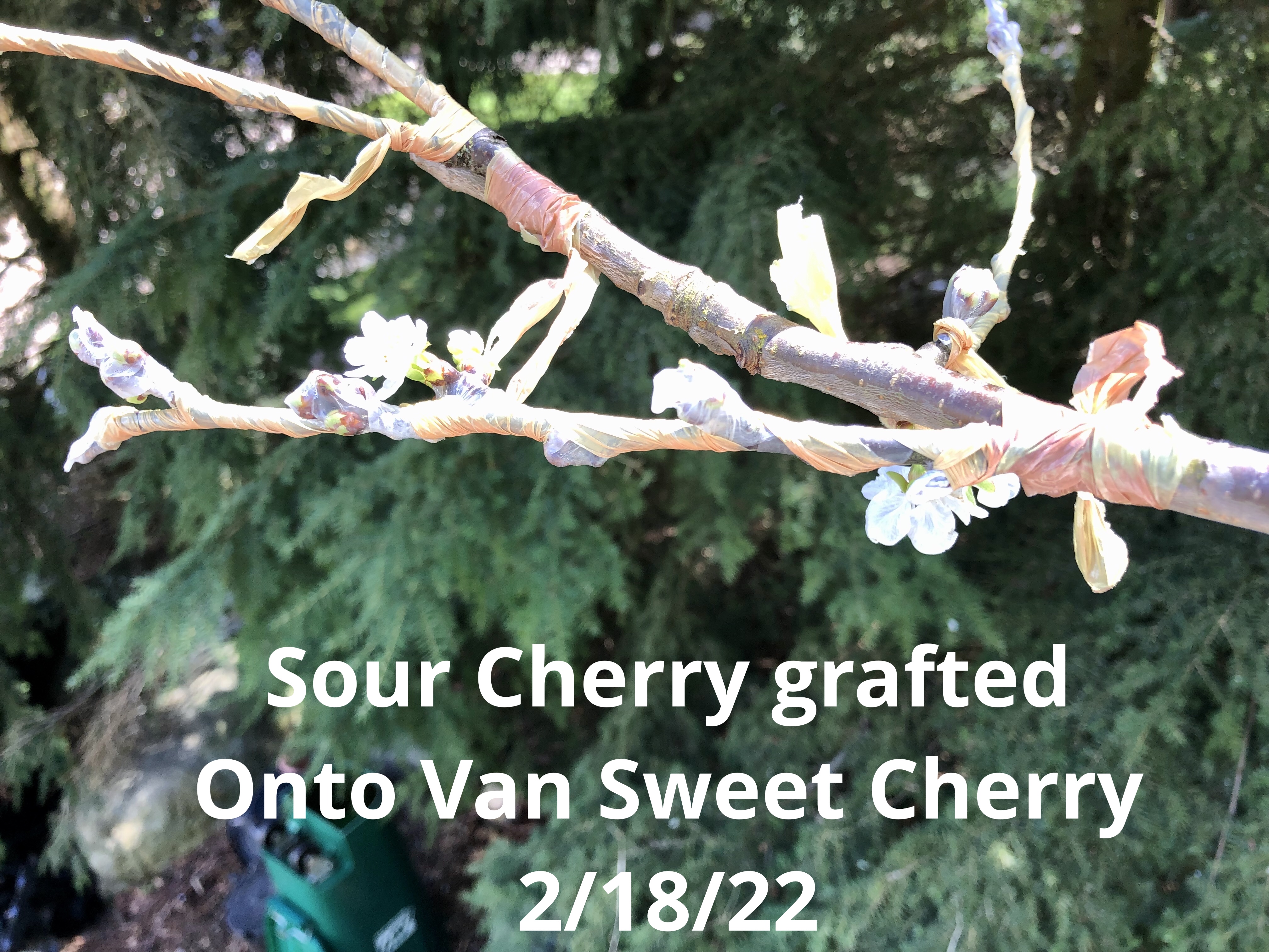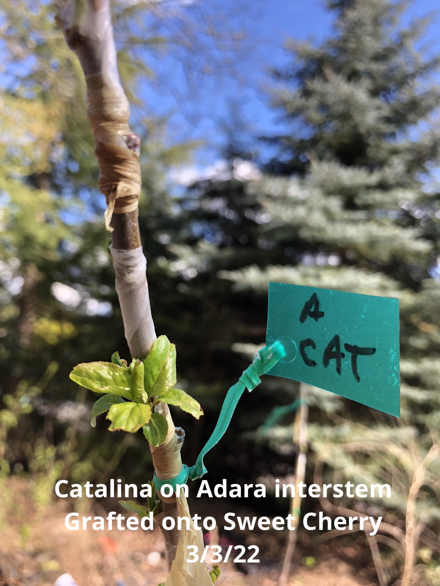 Several graft photos from my early spring efforts. Started very early well before bud swell on Sour cherry top working a mature sweet cherry around mid Feb, followed later in March with the majority of my plum grafts. Having more success this year to top work my sweet cherries with plums using both Adara and CherryPlum interstems. So far both CherryPlum and Adara appear to be working equally as interstems. These grafts seem more successful after forcing new growth last year. Grafting onto one year old shoots is much easier than efforts to bark graft on cherry. So very soon I will have all my mature sweet cherry trees converted to other more useful plums and plueries that are less attractive to crows. This is the earliest I have grafted these varieties but my % take is much better than prior years.