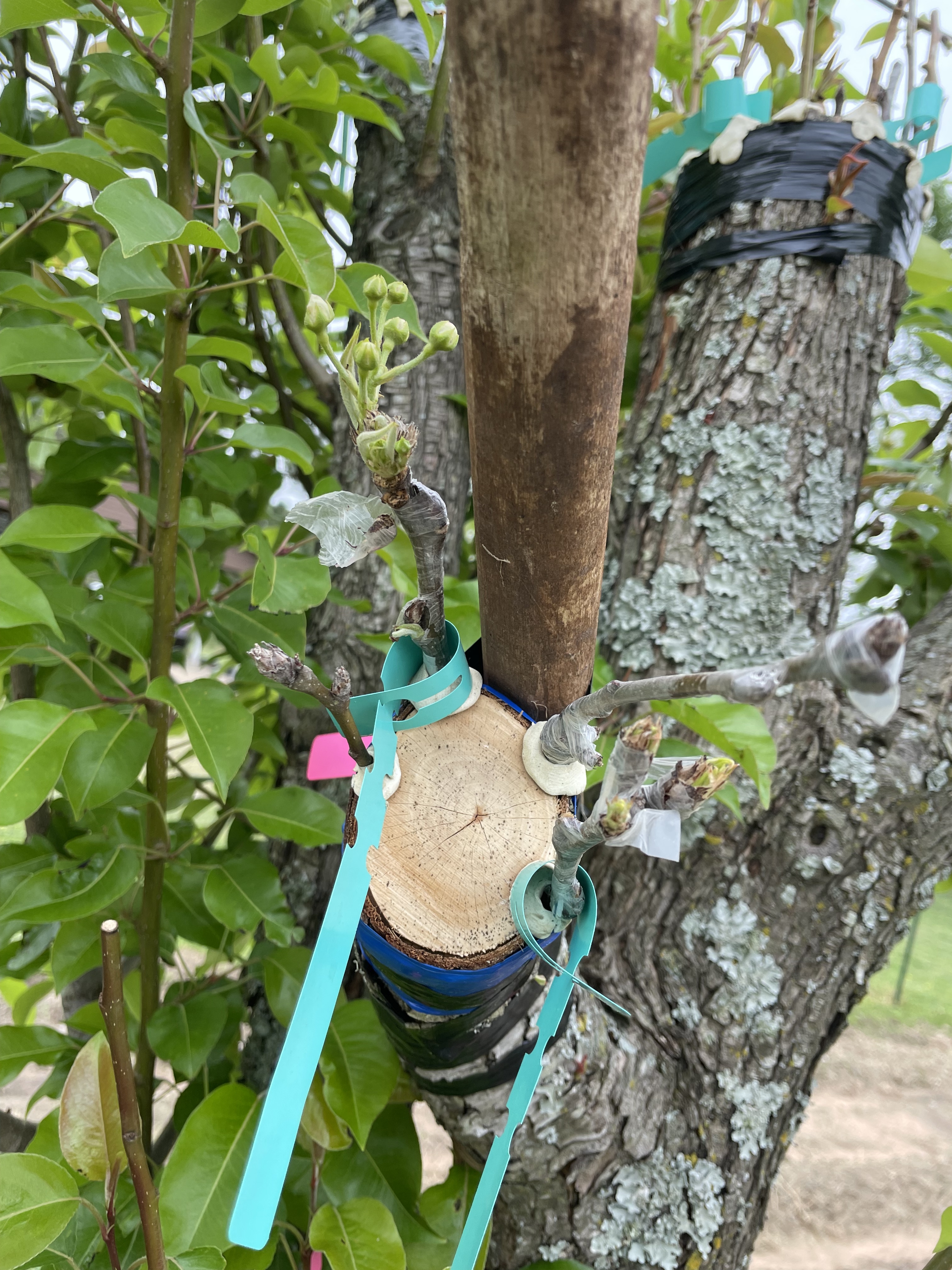 Same tree as above. Same overkill in terms of doing lots of extra grafts to make sure at least 1 (or 1 of each variety) makes it!