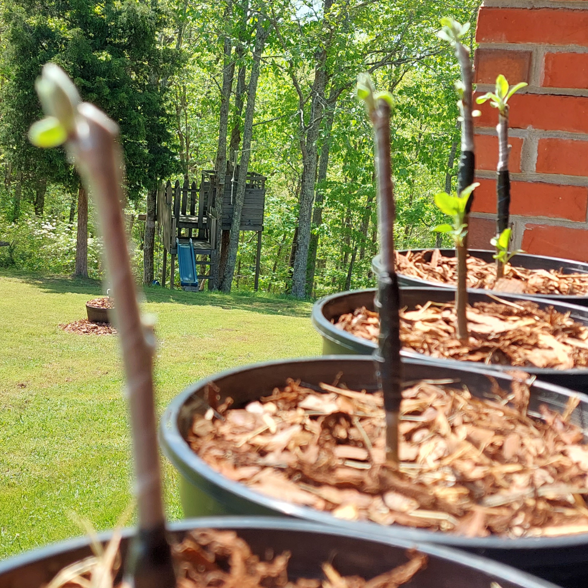 I have had my apple grafts on the back porch now for several weeks. It gets nice morning sun until about noon… then indirect light only the rest of the day.