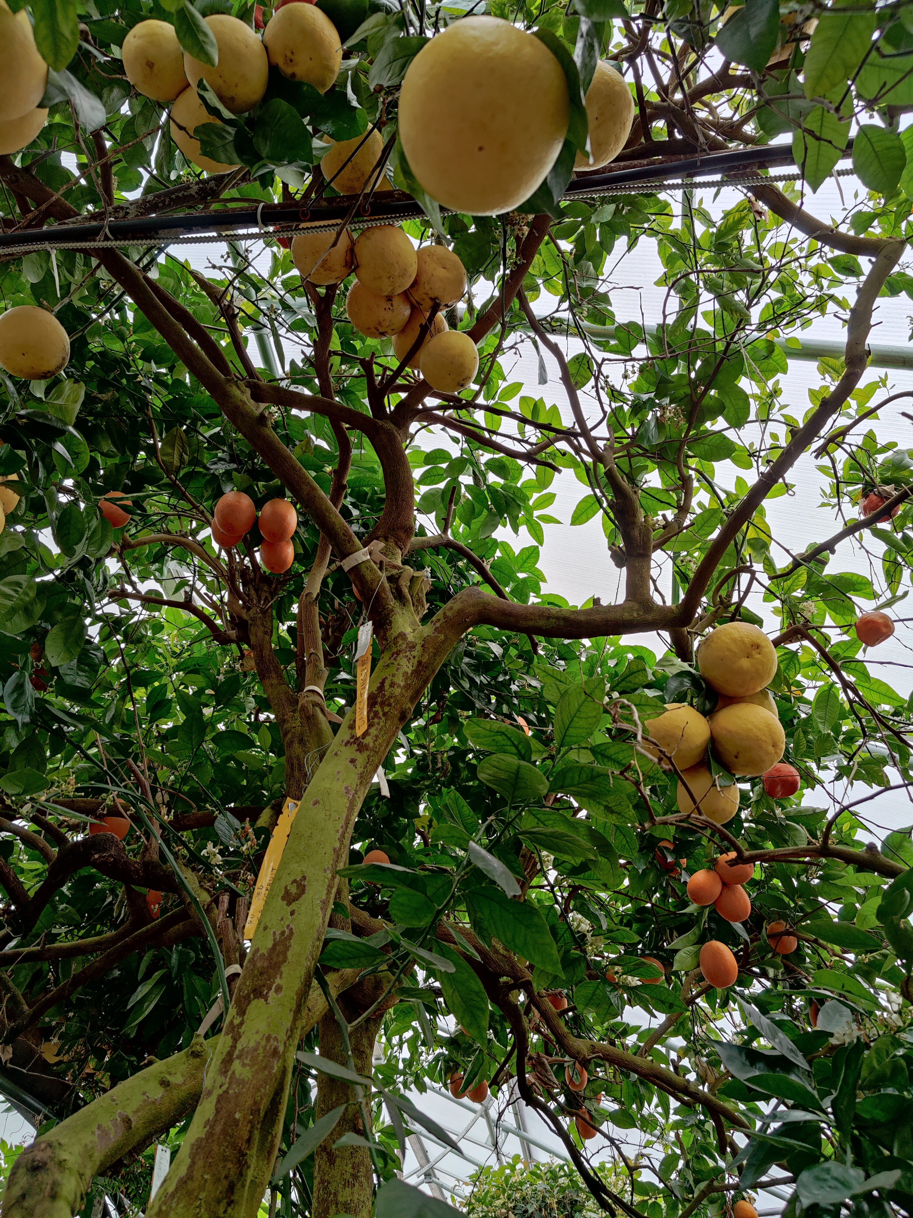 Grafting has fascinated me ever since I successfully grafted a Macoun onto (unknown) rootstock at a UNH extension workshop a couple of years ago. This past March, my family visited Logee’s Greenhouses in Danielson, CT, for a much-needed soul boost and was blown away by this HUGE citrus tree that spanned half the greenhouse and is comprised of seven grafts on a Washington Navel Orange. You can see the tags on the grafted sections. How fun it would be to walk into your northern clime greenhouse and pick citrus fruit in the middle of winter!