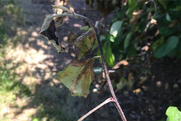 - Ideally, infected tissue should be removed from the orchard and burned. However, if pressed for time, prunings can be left in the row middles to dry out and subsequently chopped with a mower.