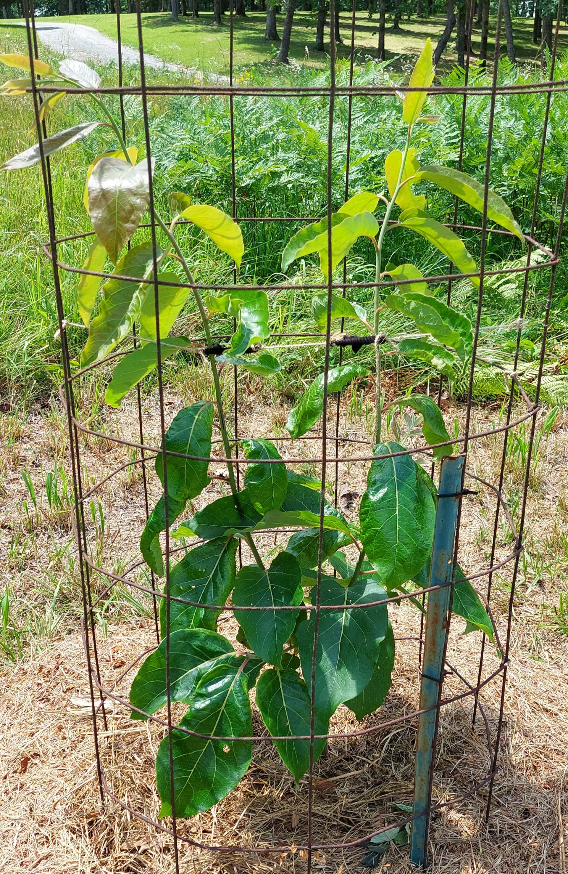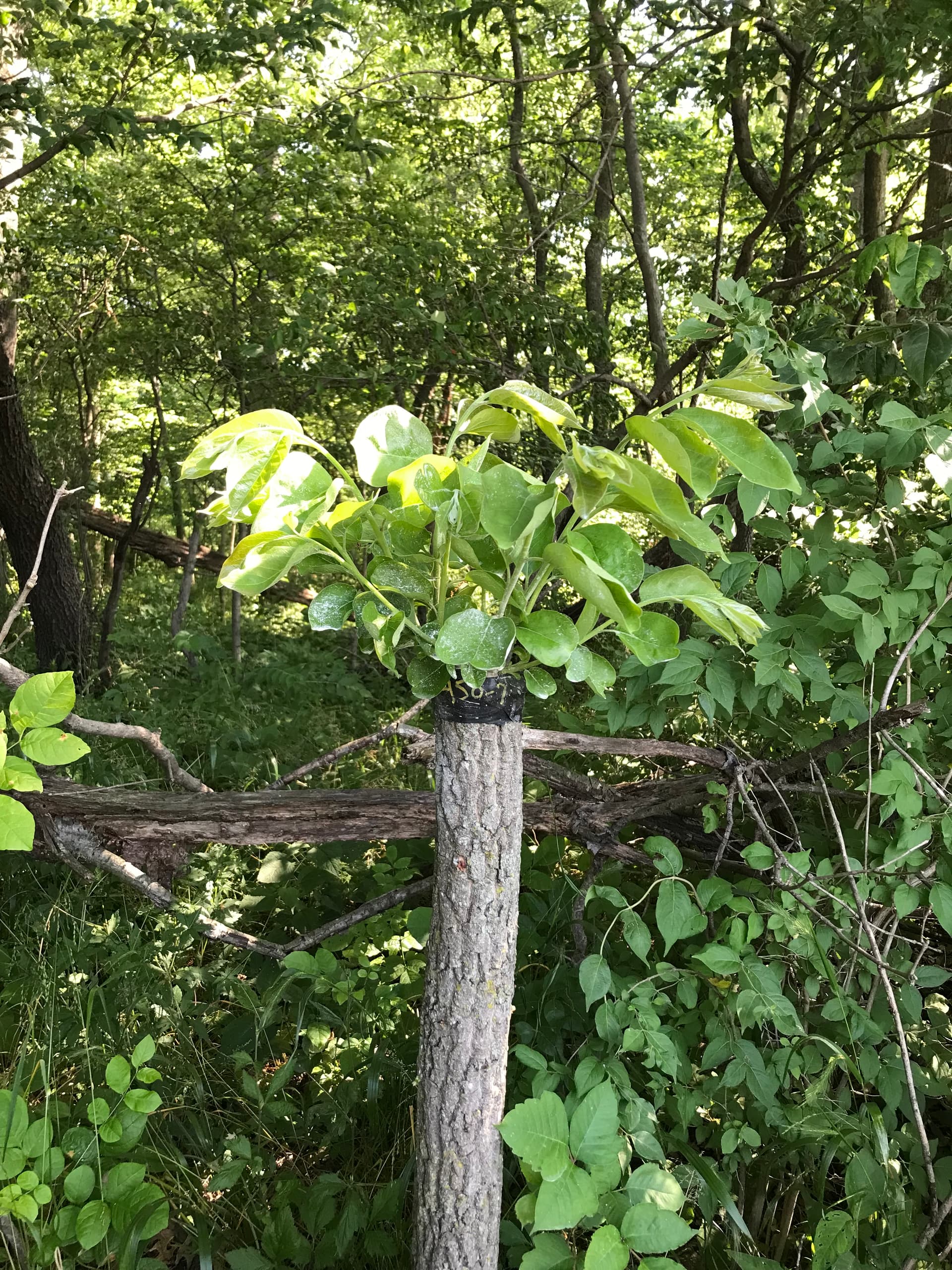 WS8-10 looking very healthy… has two shoots battling it out for tallest. I will let them get a little taller then pick one for central leader… and the other i will cut off the tip… it can be used for scionwood this winter.