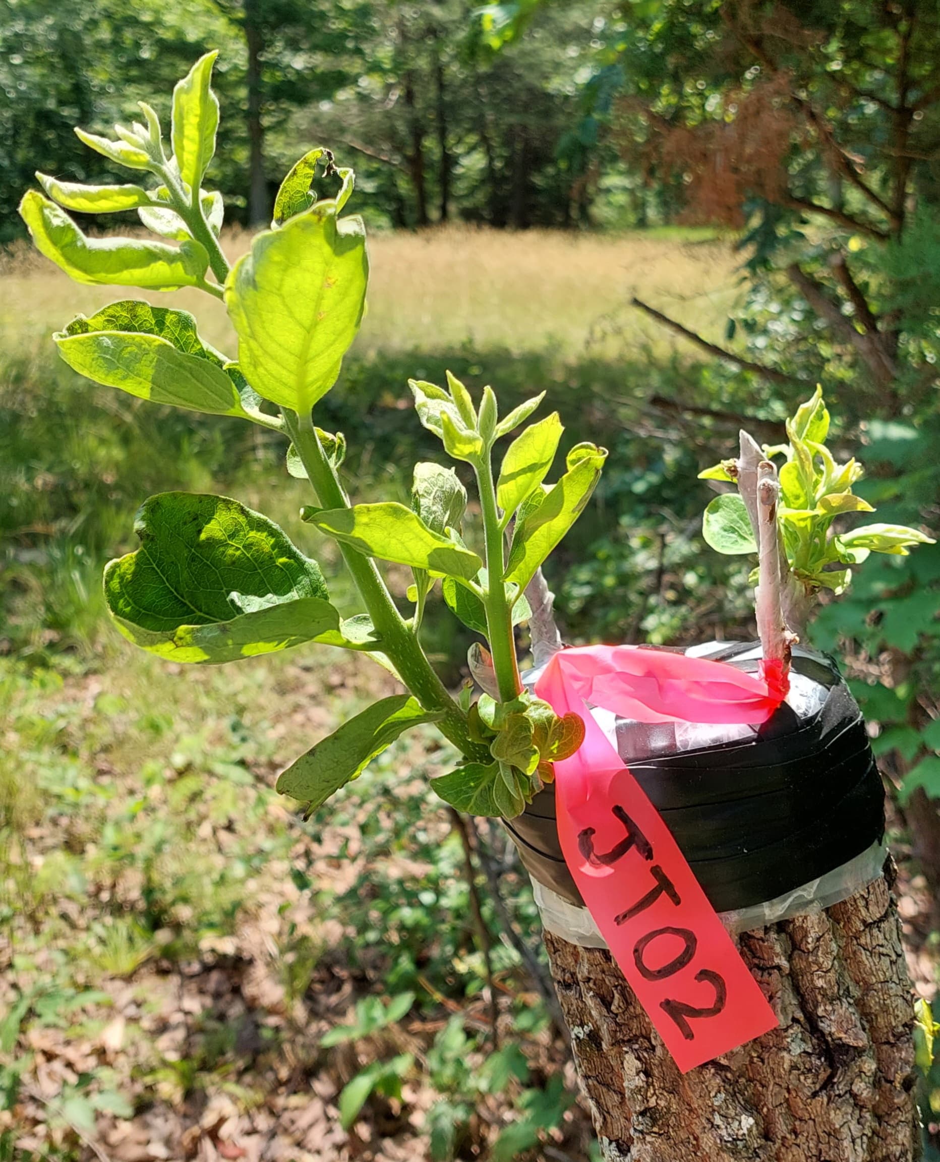 My compost pile JT02 graft… it has 2 shoots (52 and 54 inches) now. It has one smaller shoot about half that size that a caterpillar or something ate the growing tip of. That slowed it down some and probably pushed the other two more.