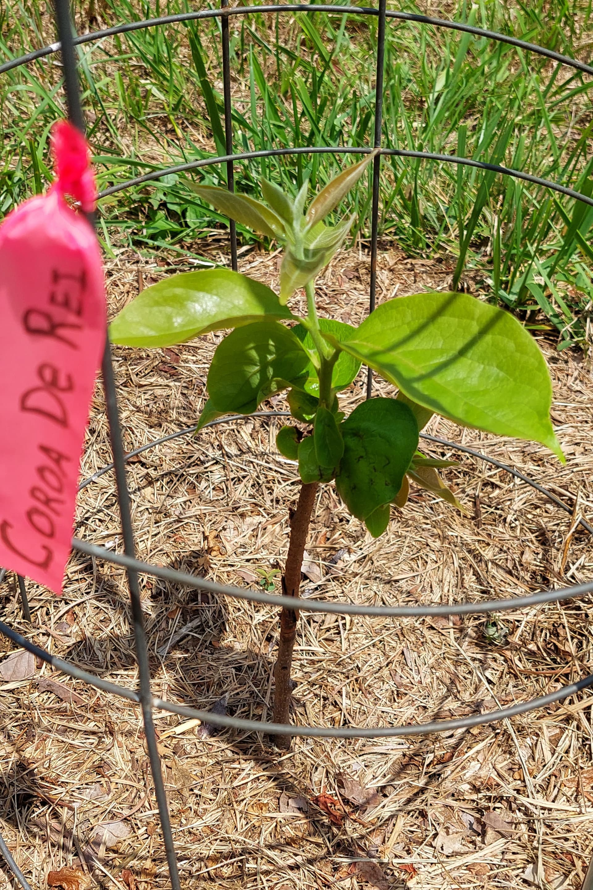 I piled all the grass and weed clippings up around it for mulch… will add mushroom compost and wood chips soon. It will be 5 ft or more and half inch diameter by fall.