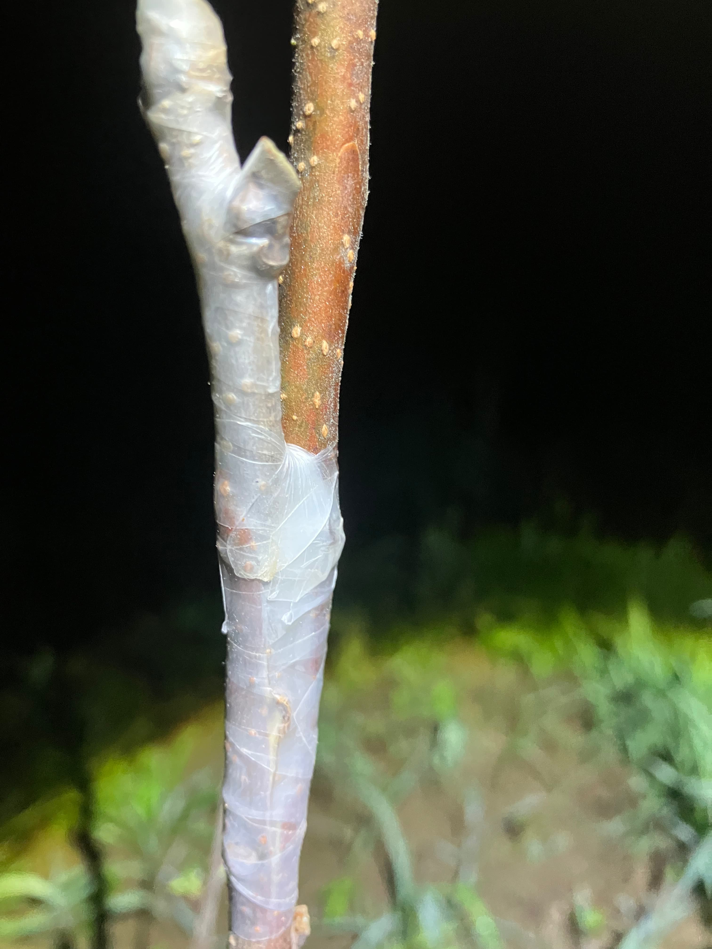 I did 6 whip toung grafts to smaller diameter rootstocks (5/16 to 1/4 inch)… and got 5 out of 6 takes.