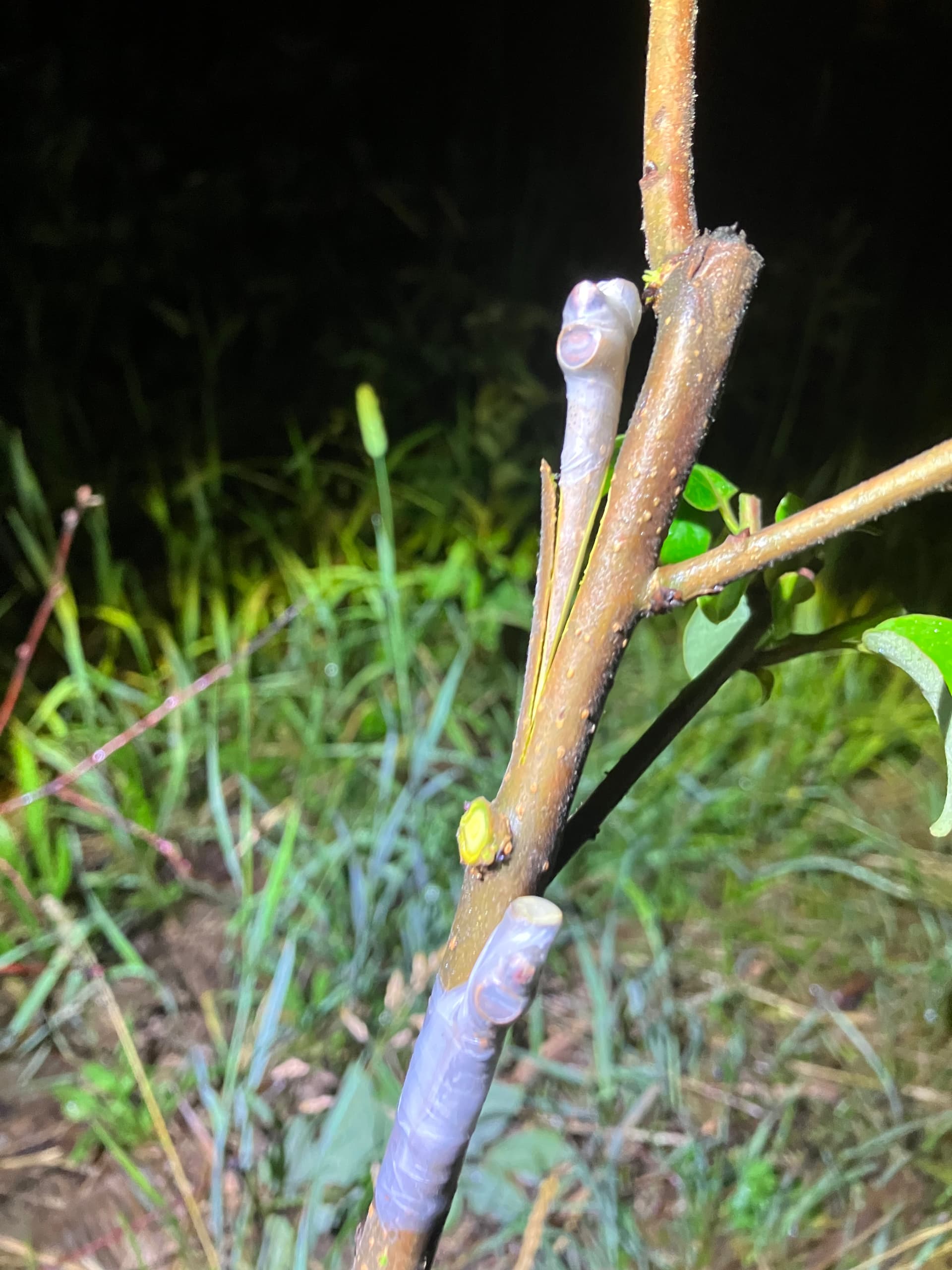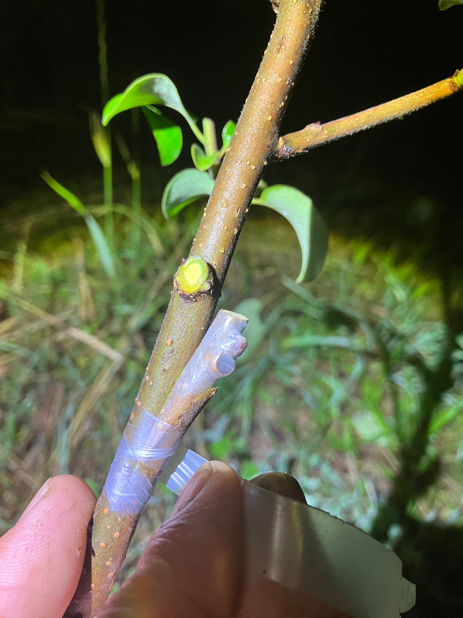 Some late season persimmon grafting. This is early golden. Added 4 grafts of this one. Persimmons love heat! Used cleft grafts on all of them.