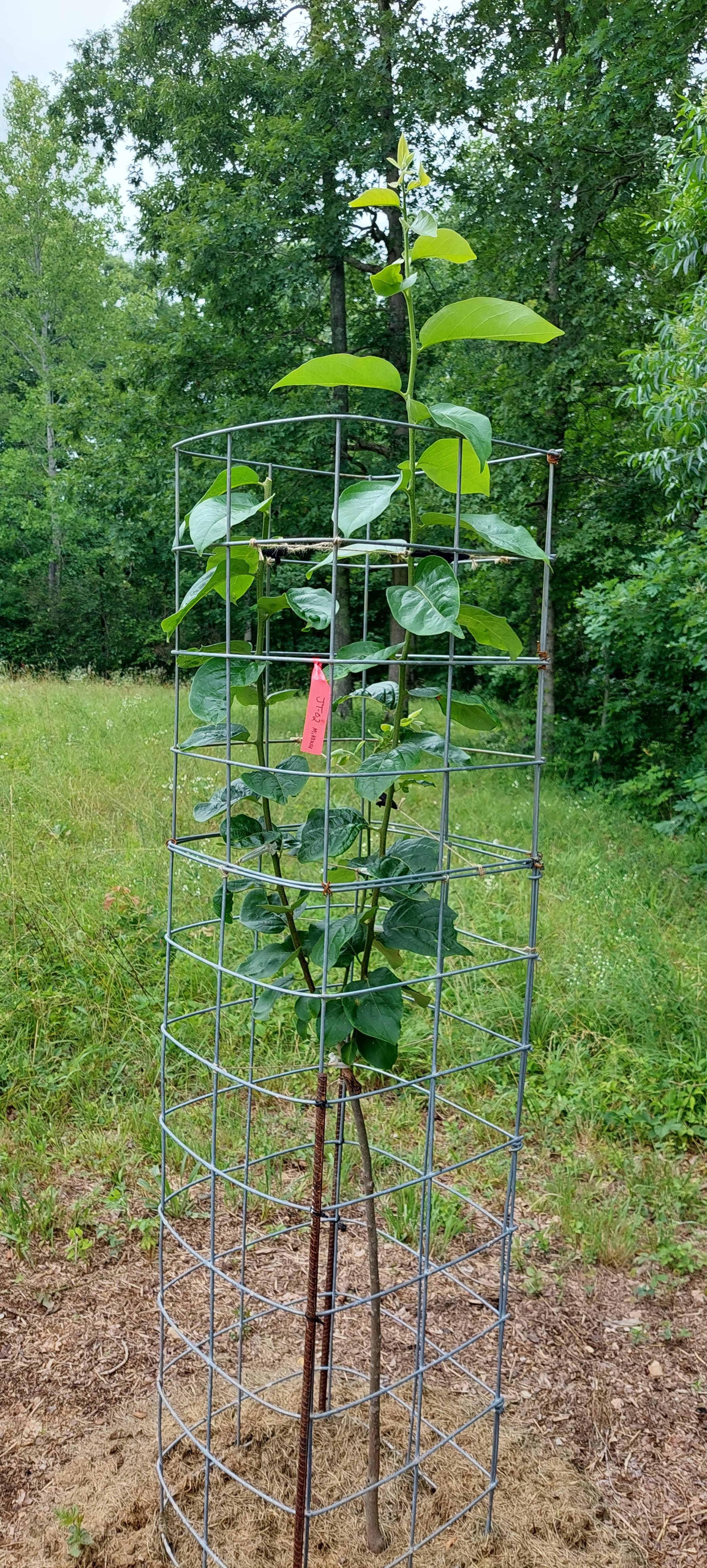 A single small tree standing all by itself in my back yard or field… has a very good chance of getting demolished by a buck deer. That is why I have cattle panel cages around all my young trees.