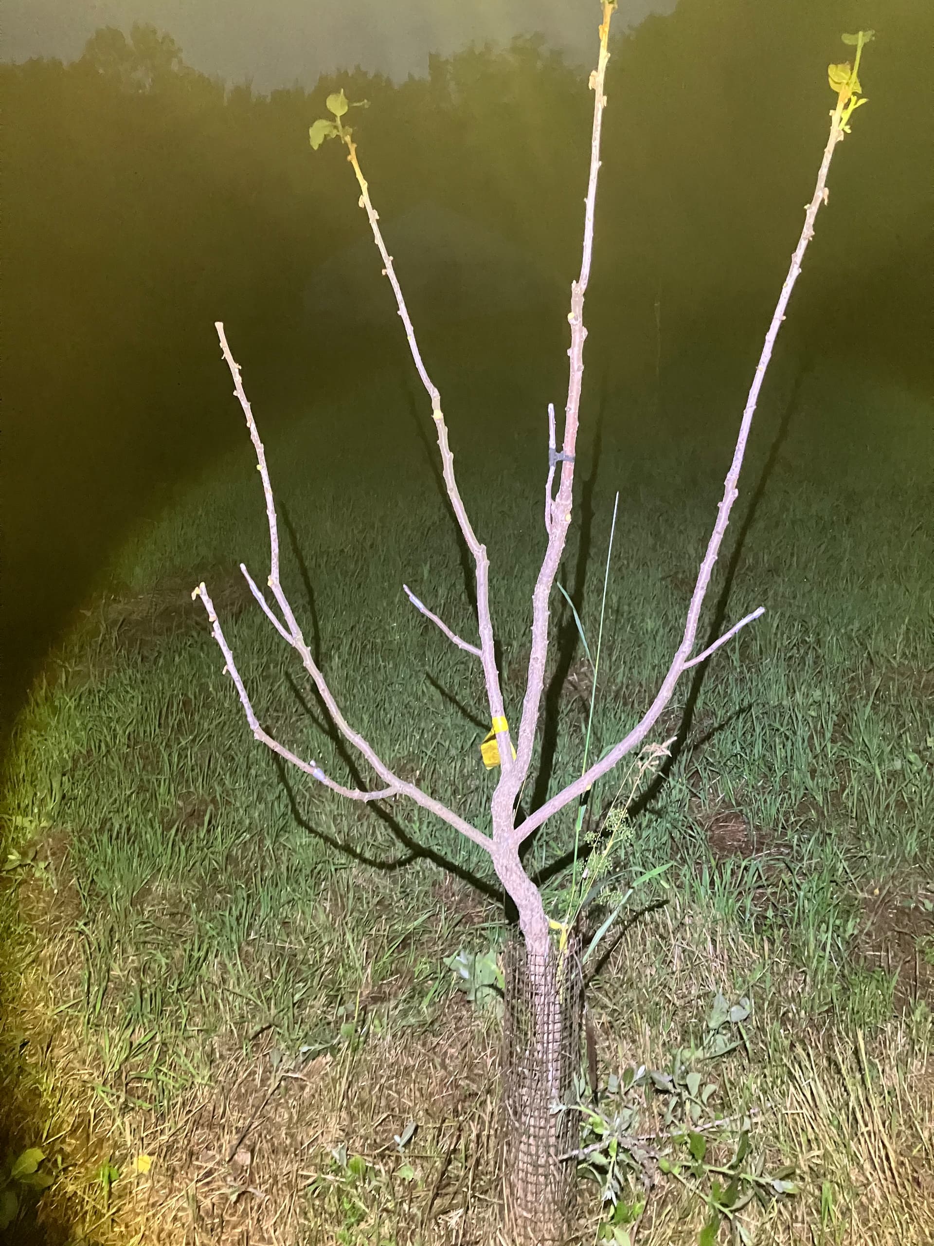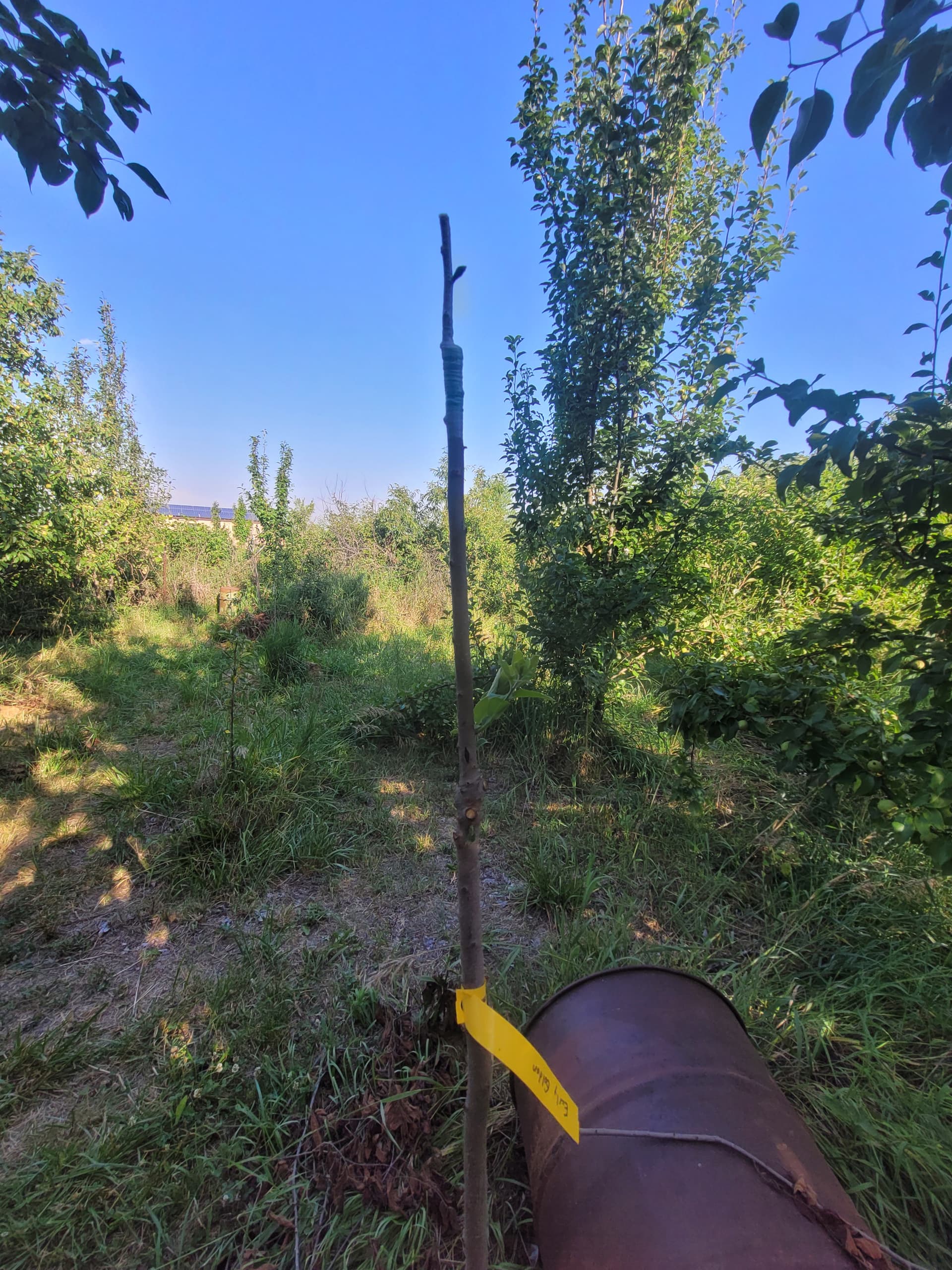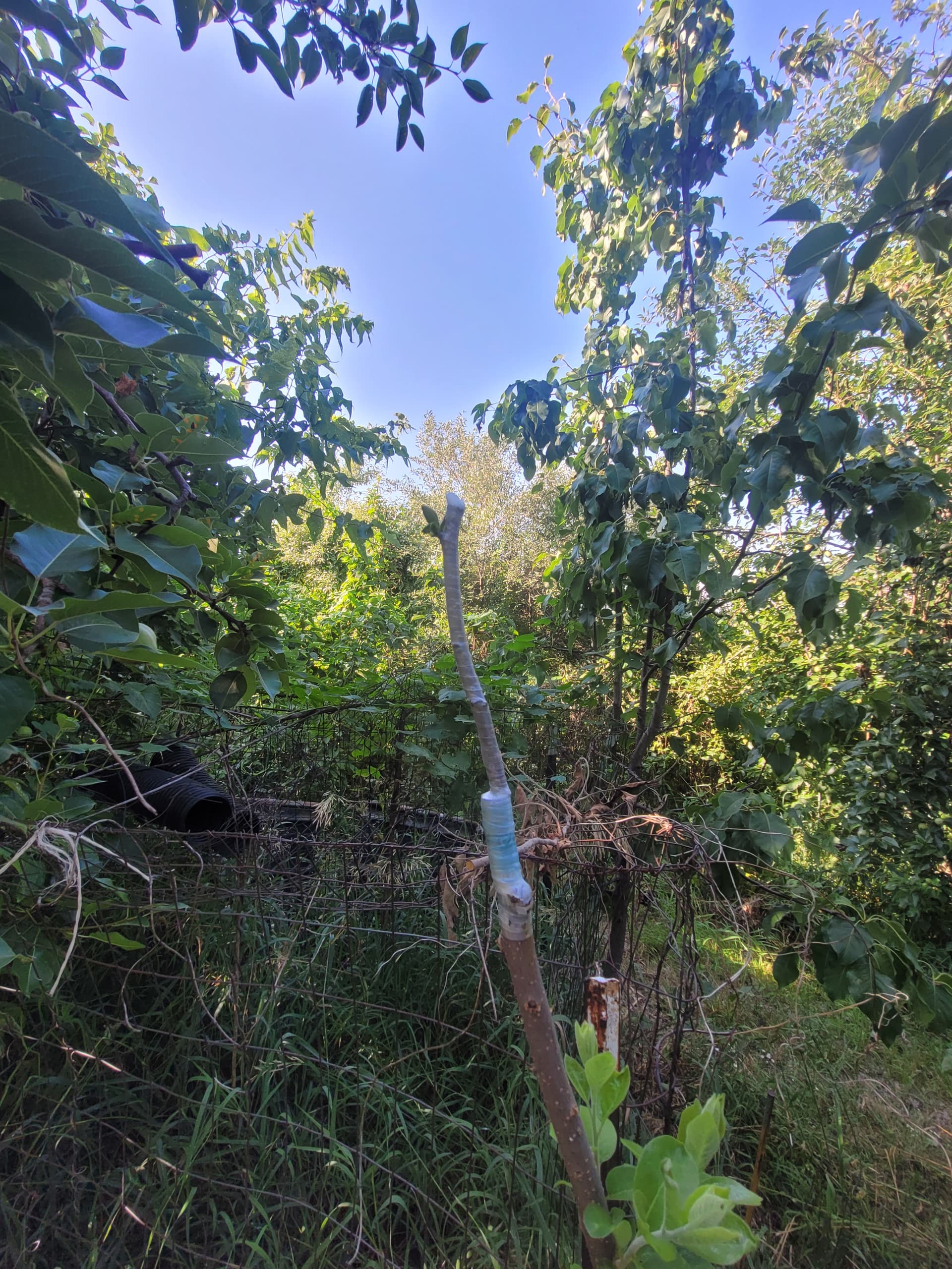 I like to hedge my bets. If they all take, the vigor will be well spread between them. Each one has a ready stake and bird perch. Grafts are at about 3 1/2 ft.