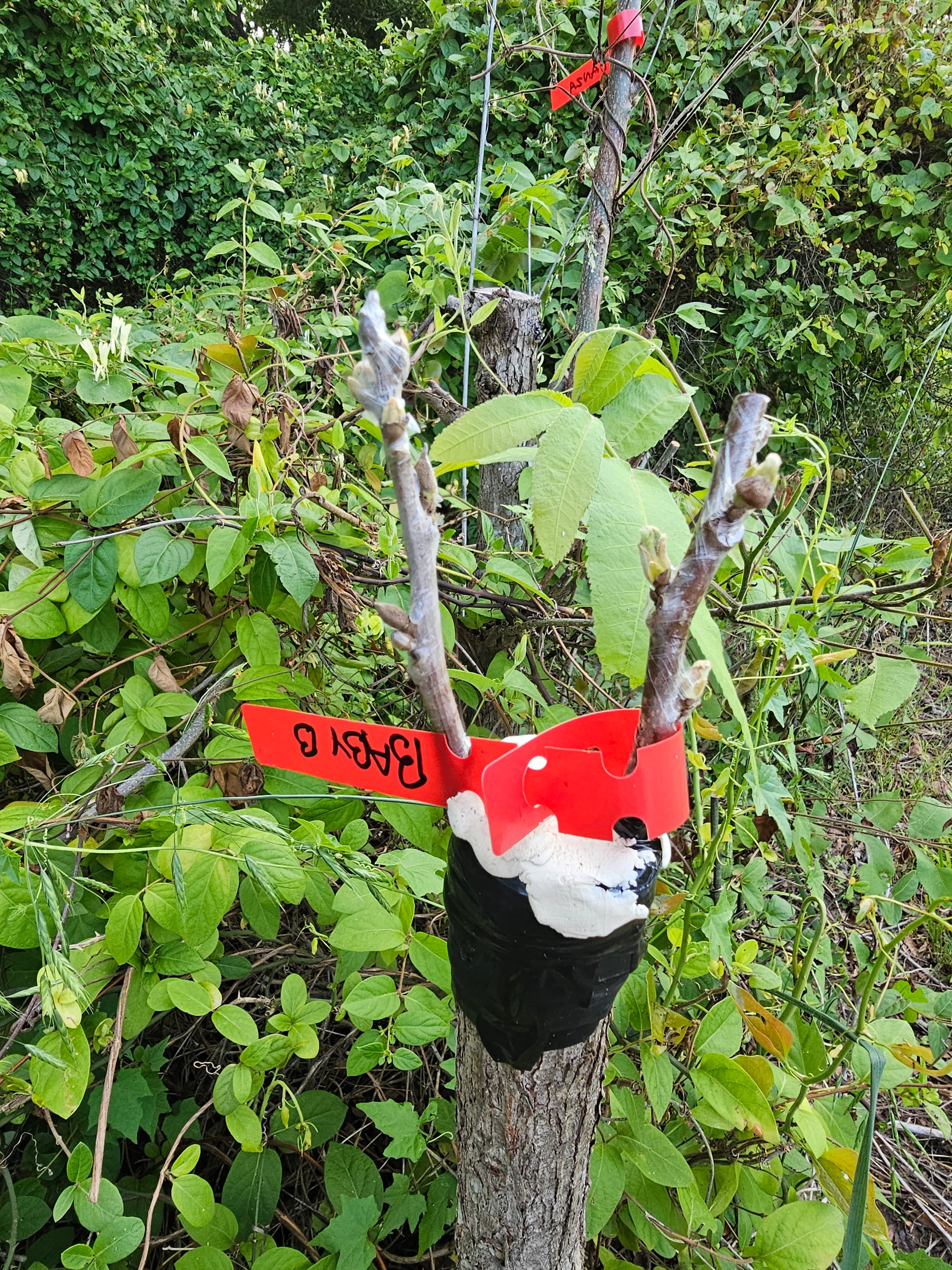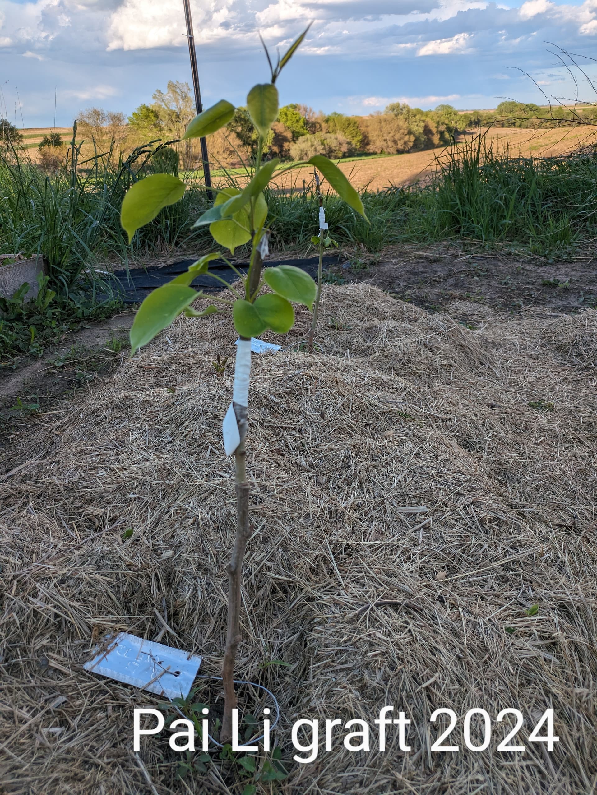 A couple of the grafts I’m most excited about have shot out nicely. Pai Li Asian Pear and Rumyanaya Zorka plum.