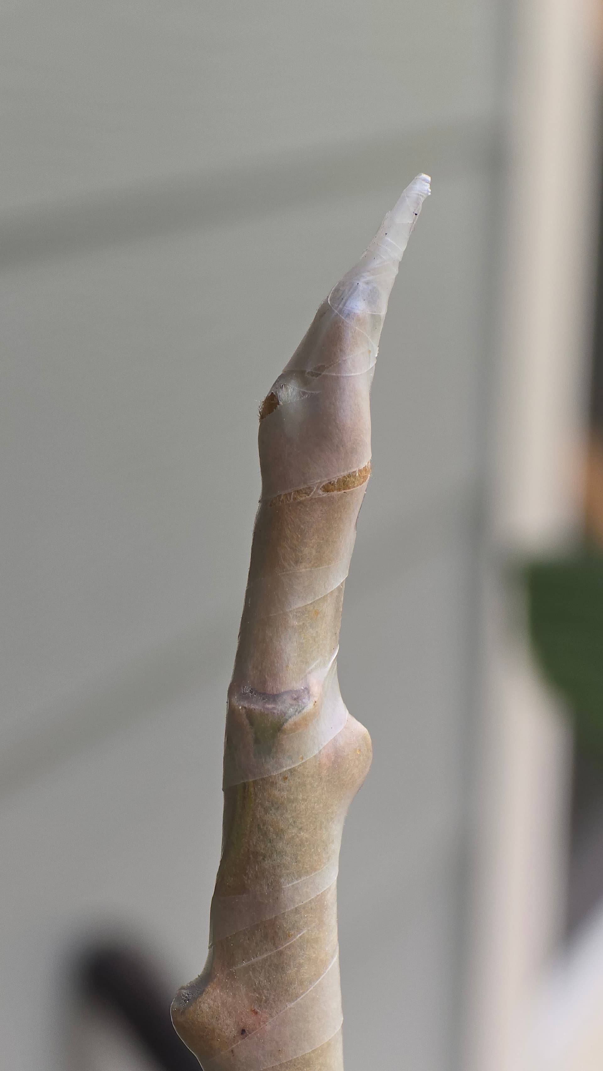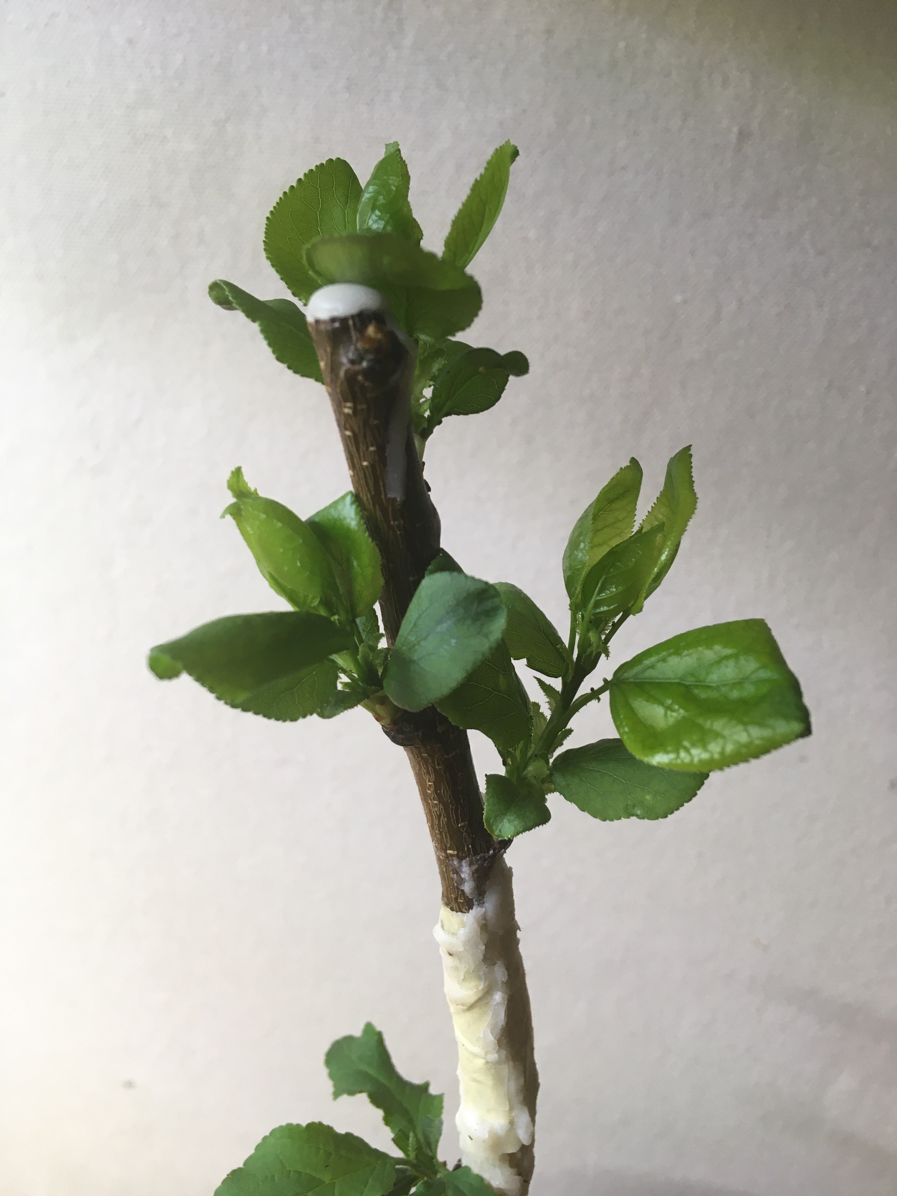 My first ever graft is still alive so far! Precious apricot on St Julien A. How long should I wait before unwrapping it?