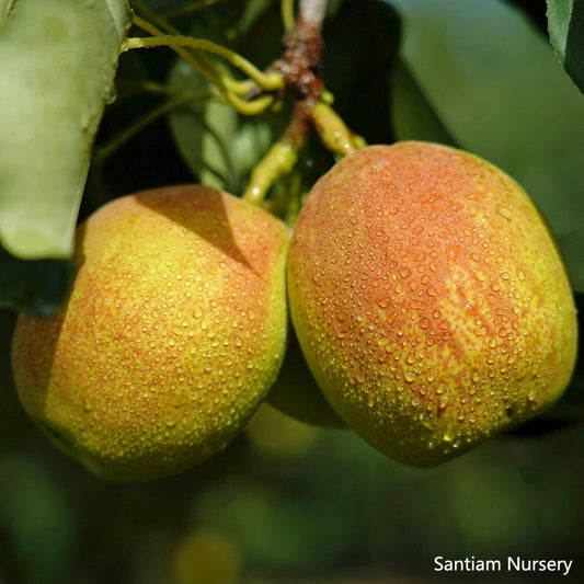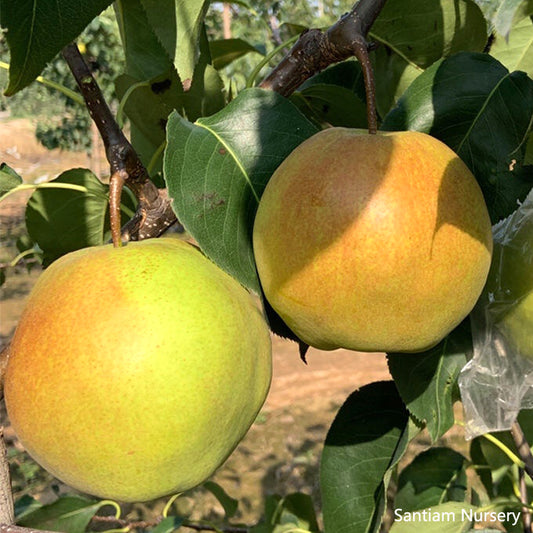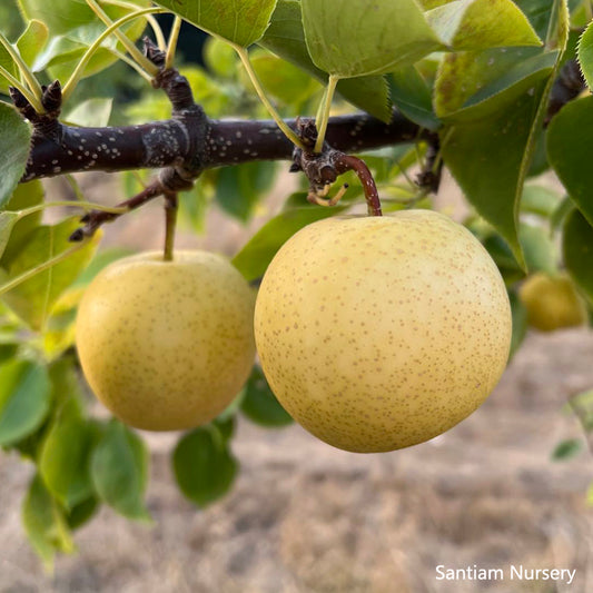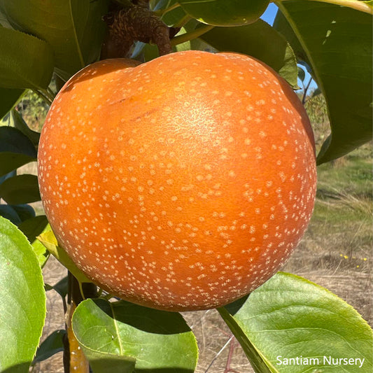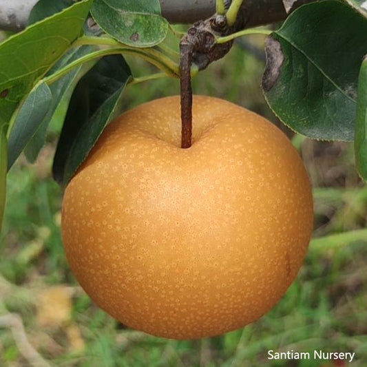 I have a Korean Golden pear tree from Santiam. It was purchased as a gift for me by my son a few months ago. The tree is a nice healthy plant currently in a container waiting to be planted when I get the ground ready for it.