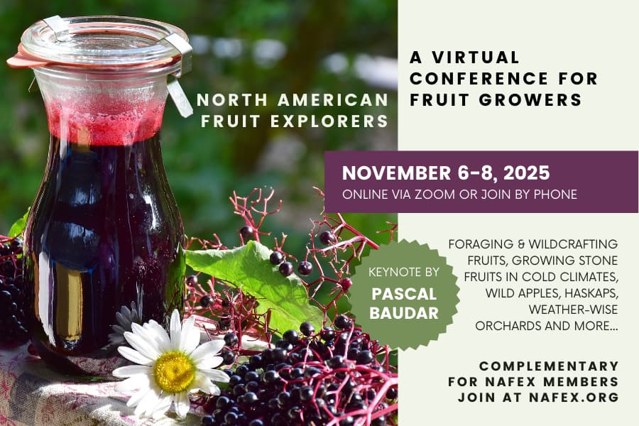The full schedule is out for the upcoming North American Fruit Explorers 2025 Virtual Conference. The keynote will be forager, author and wildcrafter Pascal Baudar. Other topics include: