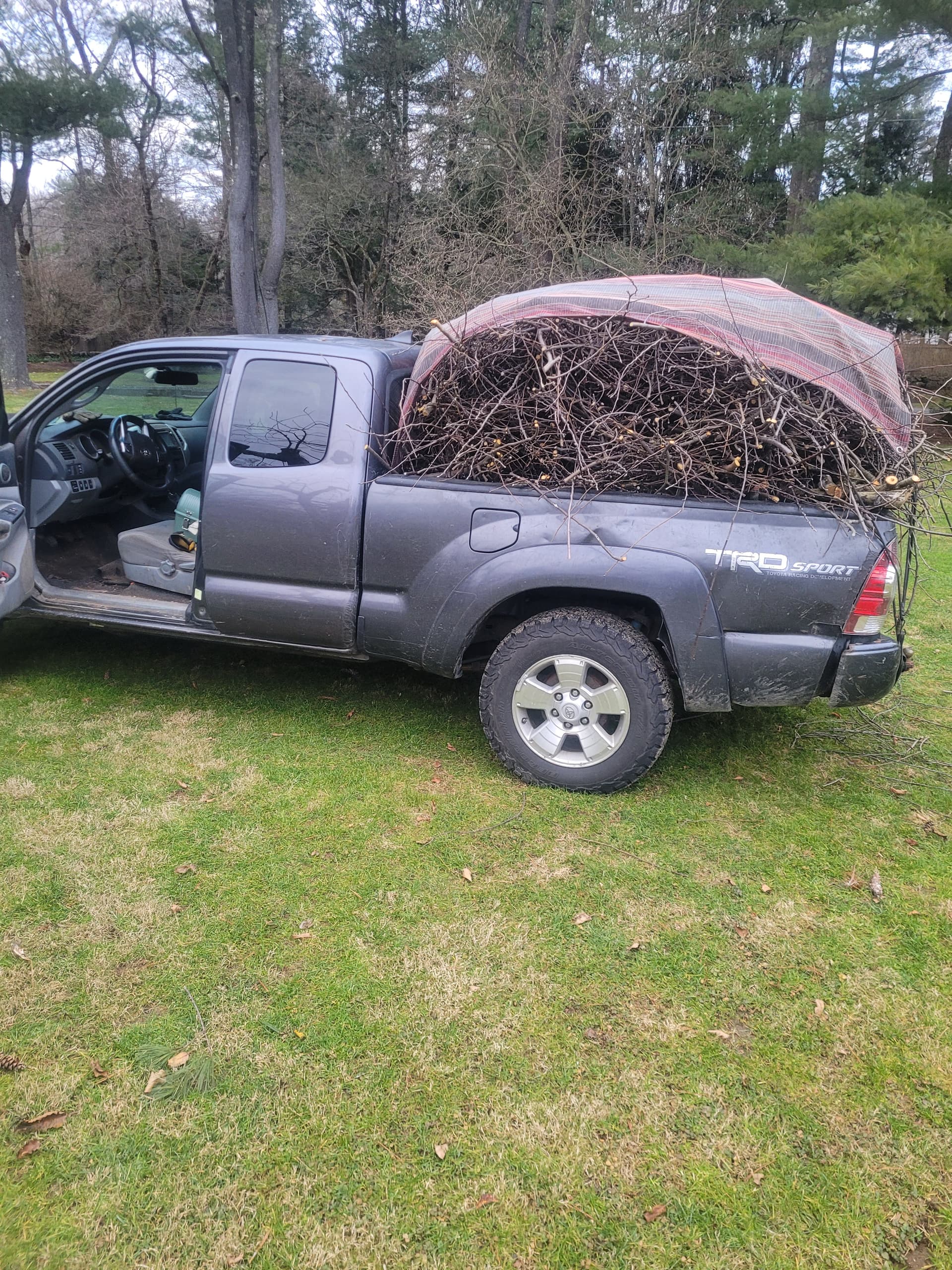 All in a days work, or 5 hours of pruning. The brush in the truck is tightly bound bundles. The tree is one of several I pruned that day.