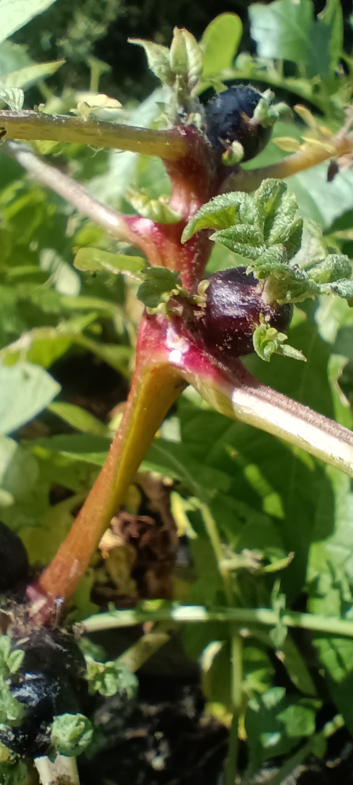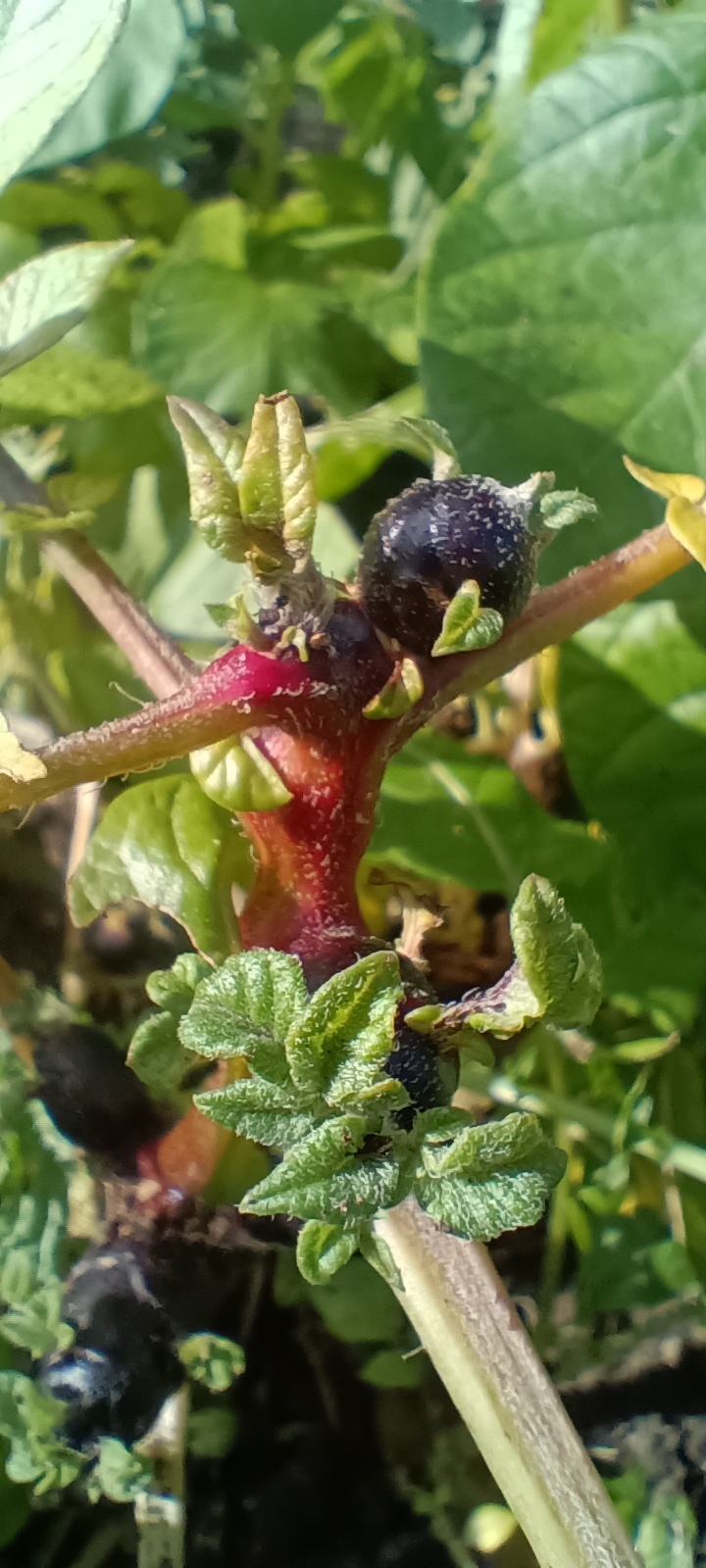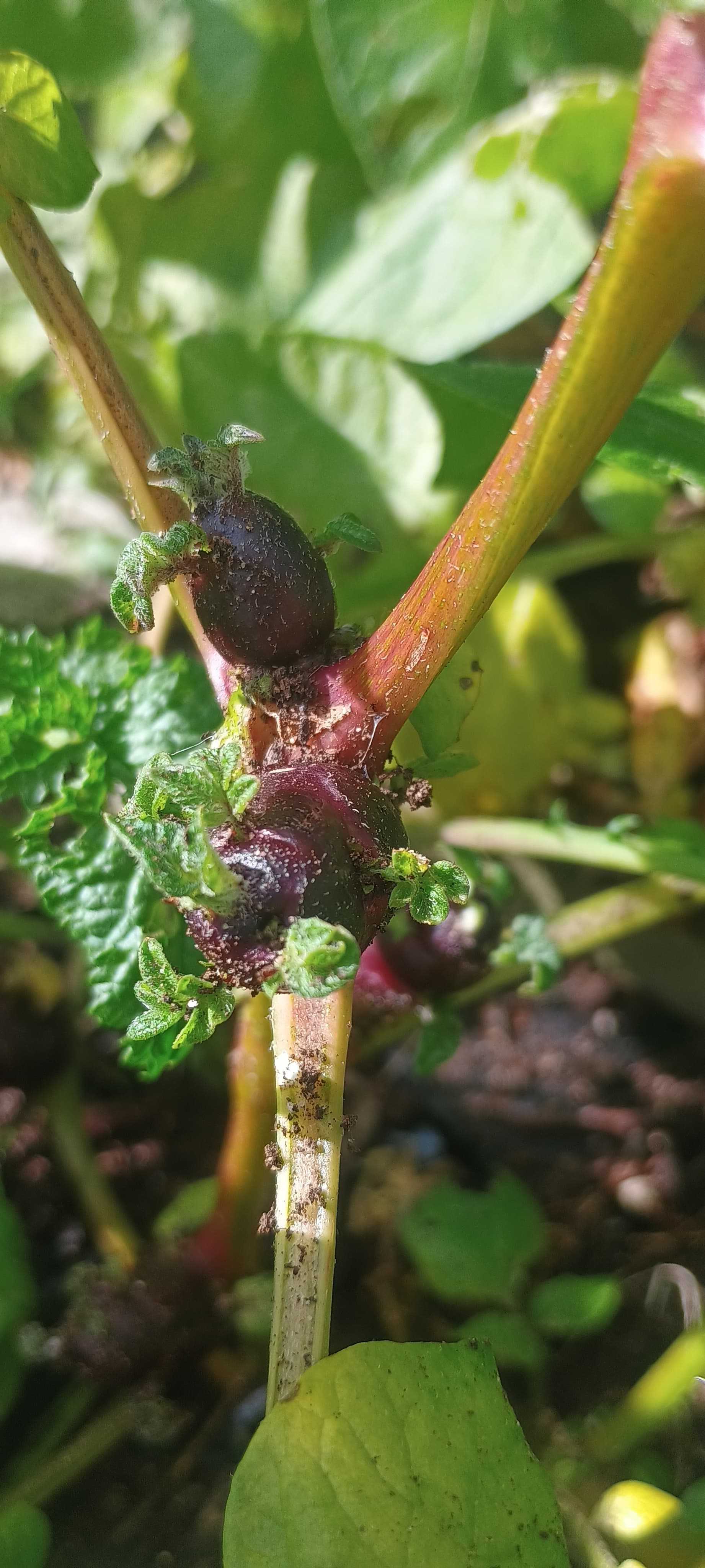 Has anyone seen a potato plant start forming potatoes aboveground? They’re where each branch joins. This is a single plant from potatoes I kept myself a few years, original type BIM (dark purple skin and marbled purple flesh). Not happening on any others or in previous years.