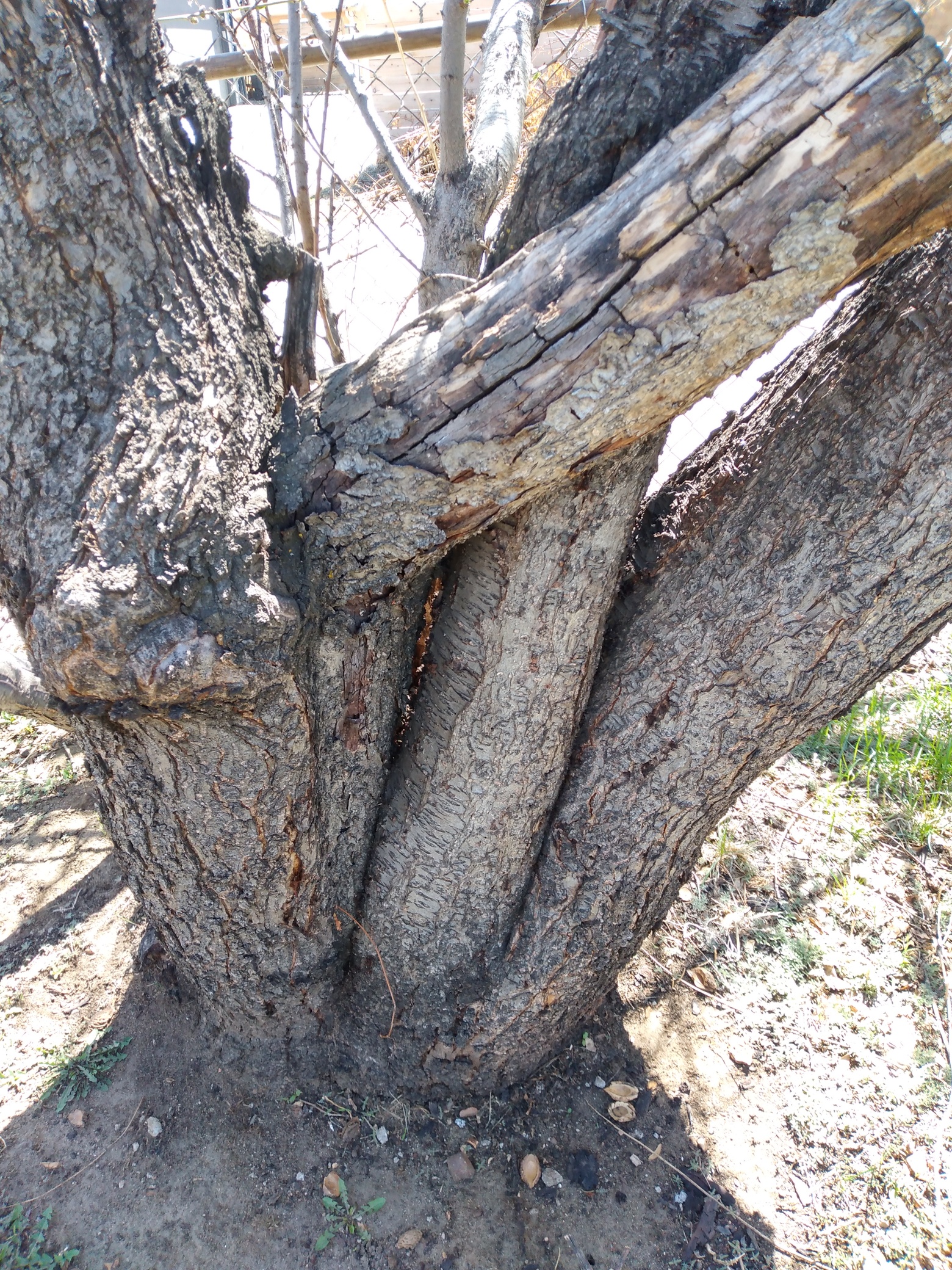 Alan the tree is not grafted, it grew naturally by itself (every year we throw about 50 lbs of peach pits from all the trees into a single hole in the corner of my yard and I get unlimited seedlings out of there and that is how this tree started life) and has never been cut or pruned in 40 years lol
