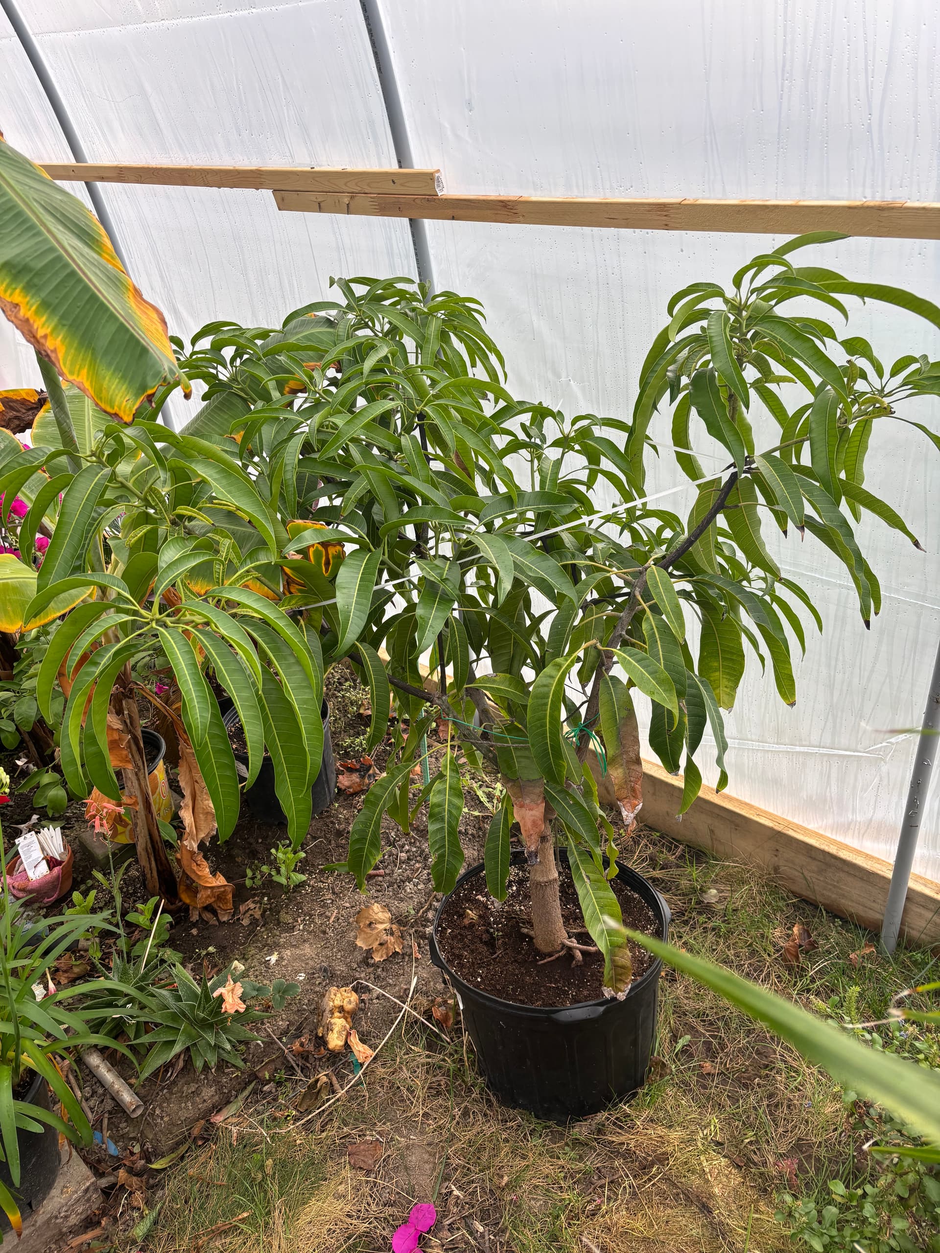 Next winter I’ll erect a 10x20ft greenhouse over the mango. Then heat that to at least 50 at night and aim for 70s by day. That should keep them relatively happy.