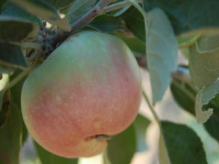 Showing some Williamās Pride pride. One of the first apples harvested from my property, not just this year but ever. The apple above was protected by an organza bag (controlled pollination with Sugarwood), which also did a nice job of keeping the plum curculios off. The unbagged fruit growing nearby got tagged by them, edible but not ss pretty.