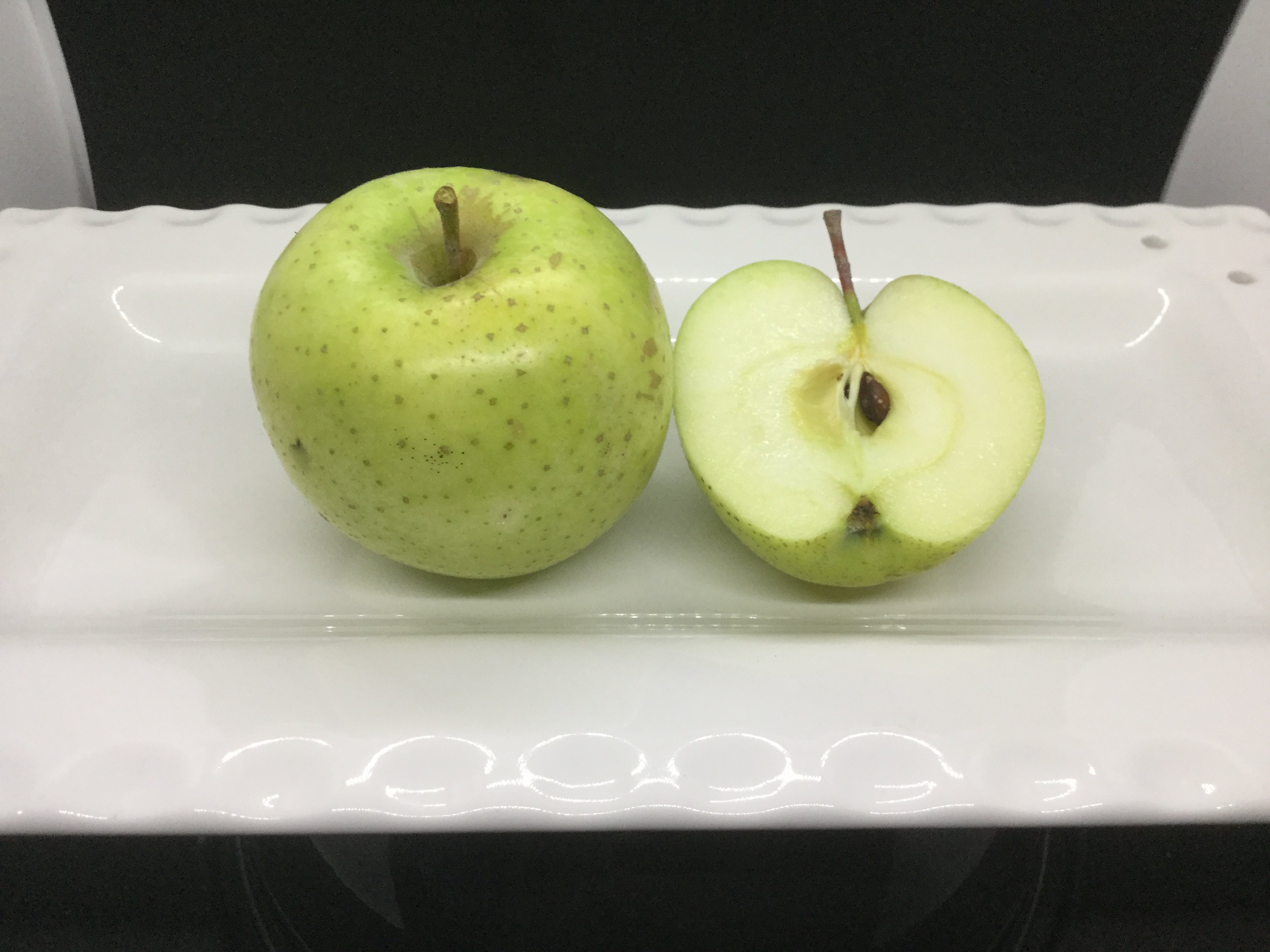 It is a late apple for me. They just started to drop. The seeds were not quite dark yet. Riper ones should have pale yellow skin. Still, these greener ones tasted really pleasant.