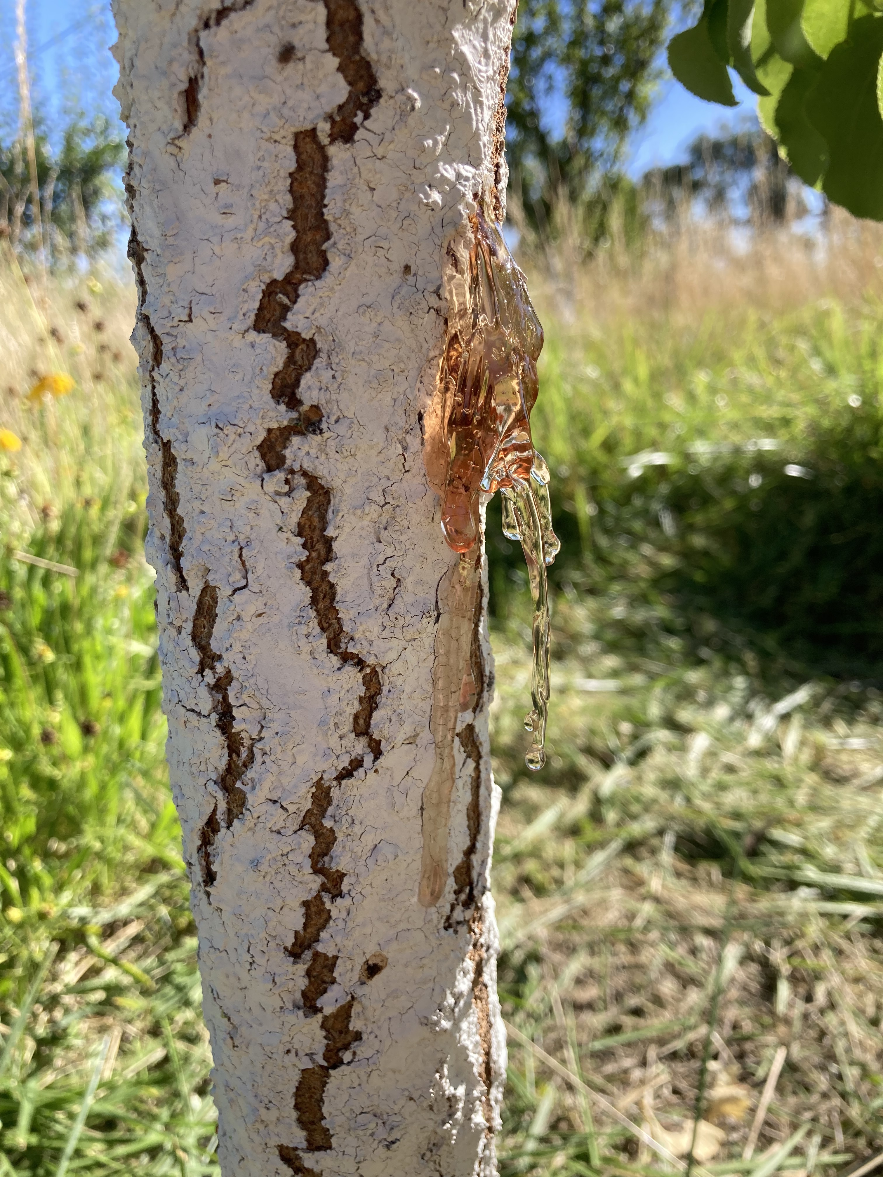 I looked at some photos online and I think you’re right about it being canker. We’re in New Mexico and my trees are in a flood irrigated pasture-- very hot and dry here, and we flood the whole field from the acequia every 2-3 weeks. So as you say, the upper sap spots might be responding to the last time we watered.
