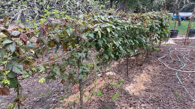 With my training methods, I only want the trellis to be 6 feet max but the newberry can grow 20 feet long so I wonder if it would produce less under those circumstances than boysenberries. Kris mentioned the spacing for new berry is 12 feet. Boysenberry spacing is 5 feet so I wonder if they would have a similar yield per space (lets say a 25 foot row) because even though newberry yields more per plant you could fit more boysenberry plants into the same amount of space so maybe they would equal out?