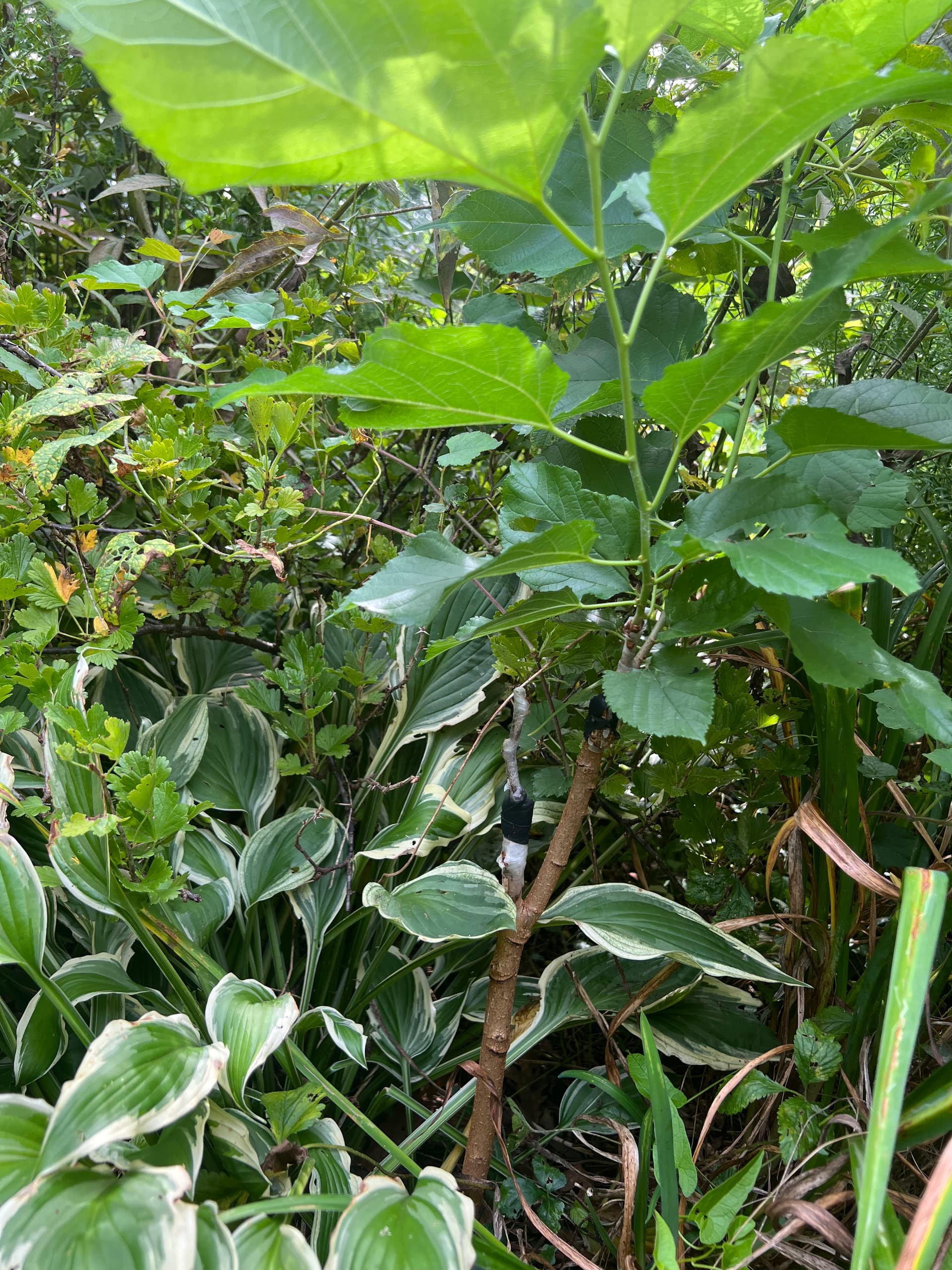Here is a late-season graft that I did 2 cleft grafts on and one is growing well. Whenever there are forks or other branches I always put on more than one graft to increase chances. This will get dug out this fall when dormant and given to my wife’s nephew who tasted the Girardi at my house and has been asking for a tree ever since.