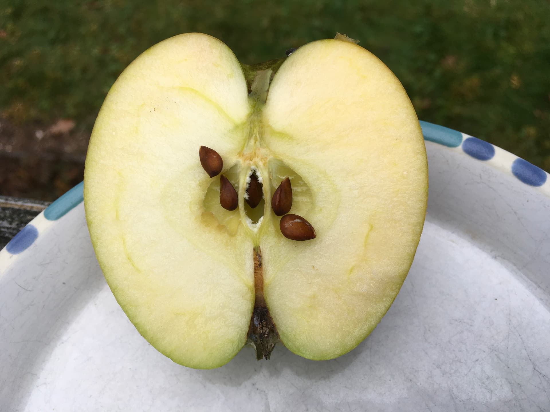 Well, I guess I would have called it an apple with some limited amount of russeting, so that the skin feels a tad sand-papery especially near the stem. But these have entirely smooth skin which is unlike the other GoldRush I’ve had. My experience matches Joe’s in that I’ve now had two clearly different apples both called GoldRush, though I prefer the greener, less sweet type. Yes, I know they sweeten in storage, since I’ve stored the other type, but still they’re different. Also, I bought our tree from Adams County and it is definitely of the greener, denser, more tart variety. These ones I just got taste to me like an improved Golden Delicious. I guess I will just have to buy according to looks, as Dudeness suggests.