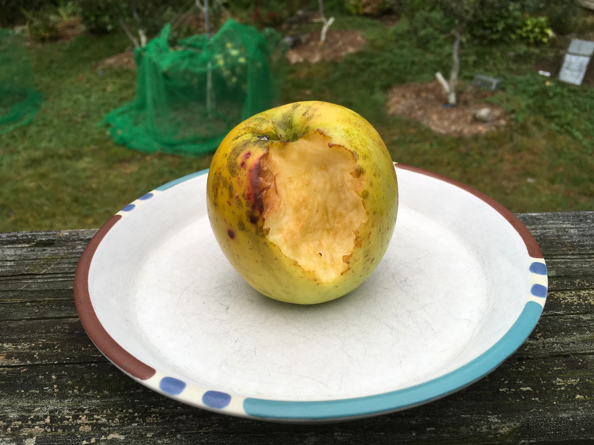 I saw bird pecked on one Gold Rush. I thought it would go after my red apples but it pecked this green one.