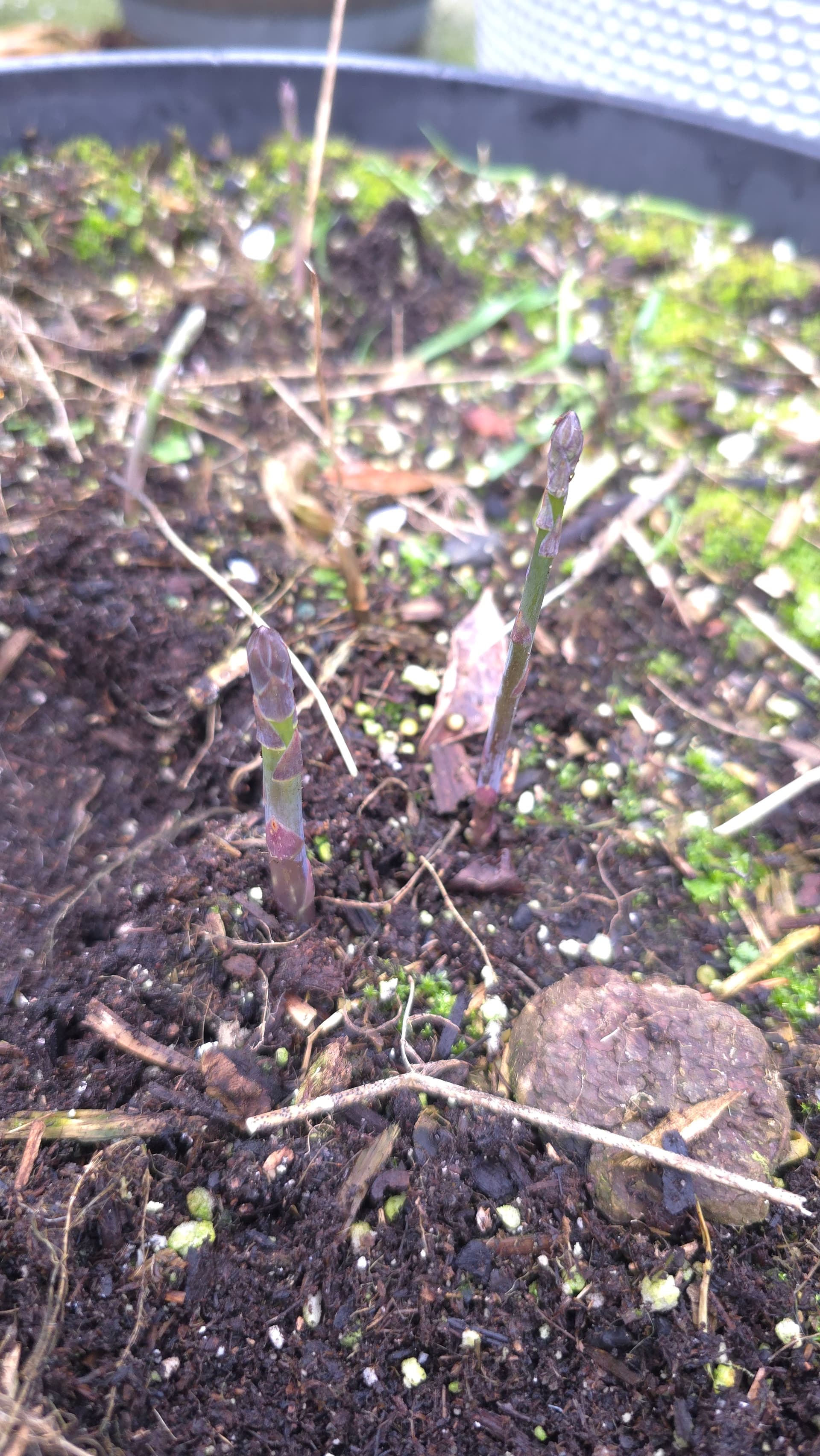 my asparagus beds are on year 2 and 3 now. I am hoping to get at least a meal worth from the older bed this year. I refrained from picking more than a single spear or two last year for garden snacking. one bed put up HUGE ferns last year.