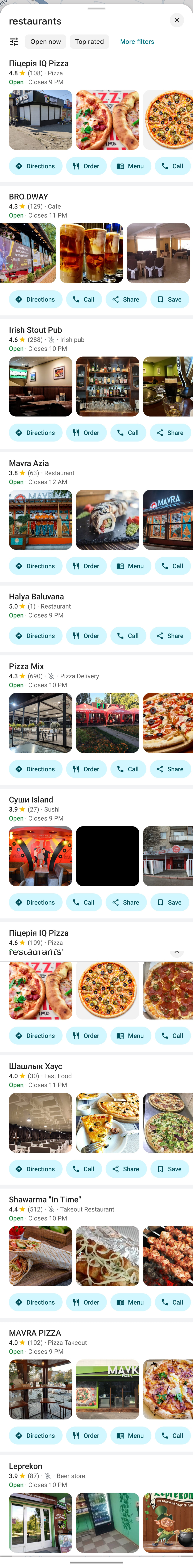 Hereās a small sample of restaurants in the southern district of the city, a district that after a recent offensive is now less than ten miles from the front line. No stable grid, almost daily bombings, right next to the front lines and even within drone range, and yet pizza, beer, sushi, boba tea, Irish pub food, shish kabobs, you name it, you can get it: