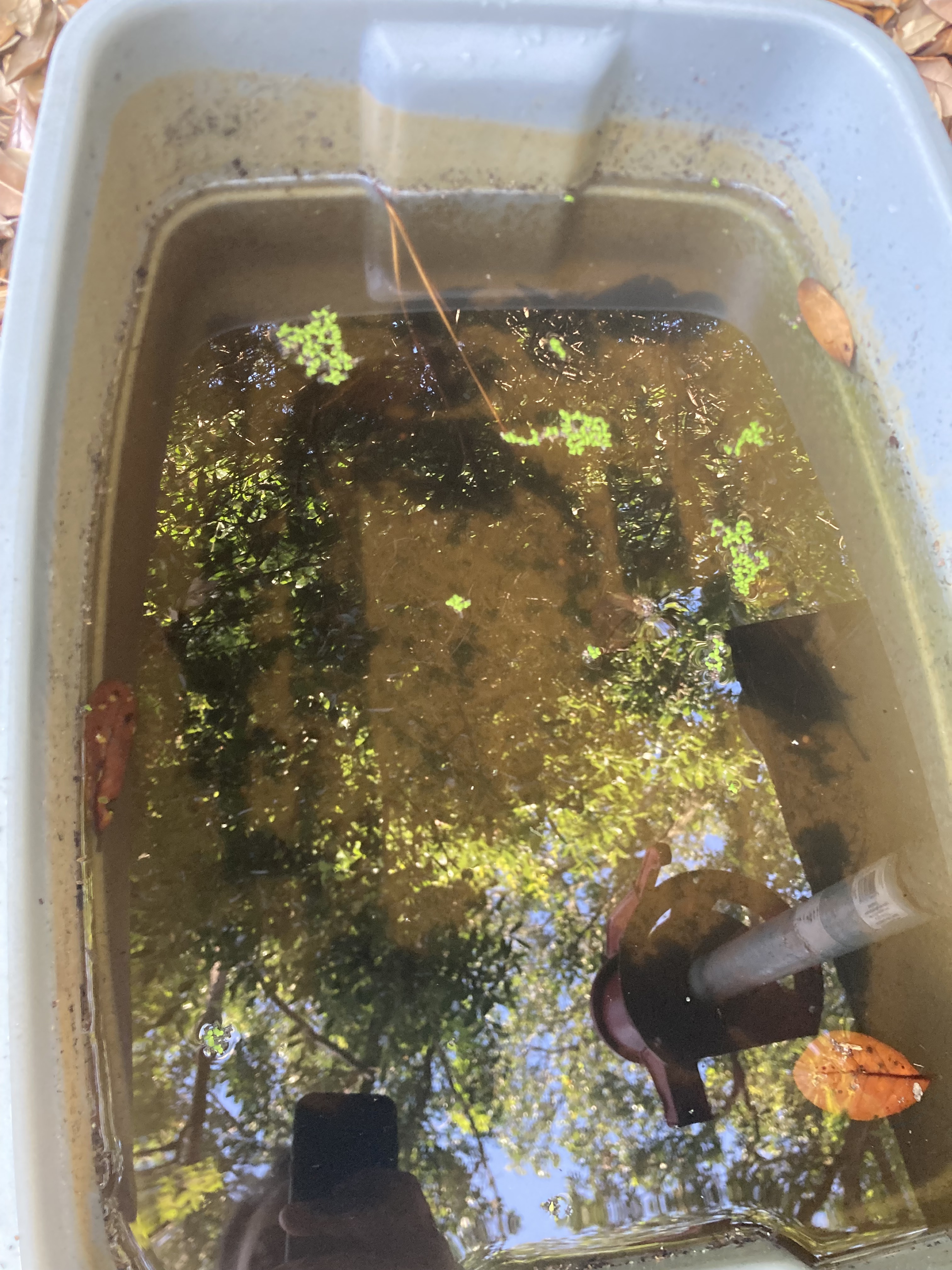 thats funny. i just did the same. i put them in a kiddie pool with some soil and chicken manure. mines got some duckweed mixed in. i plan to put some in a bowl to overwinter indoors at the end of the season. its only been 3 days so they havent done much. our nights are stlll getting in the mid 40’s.