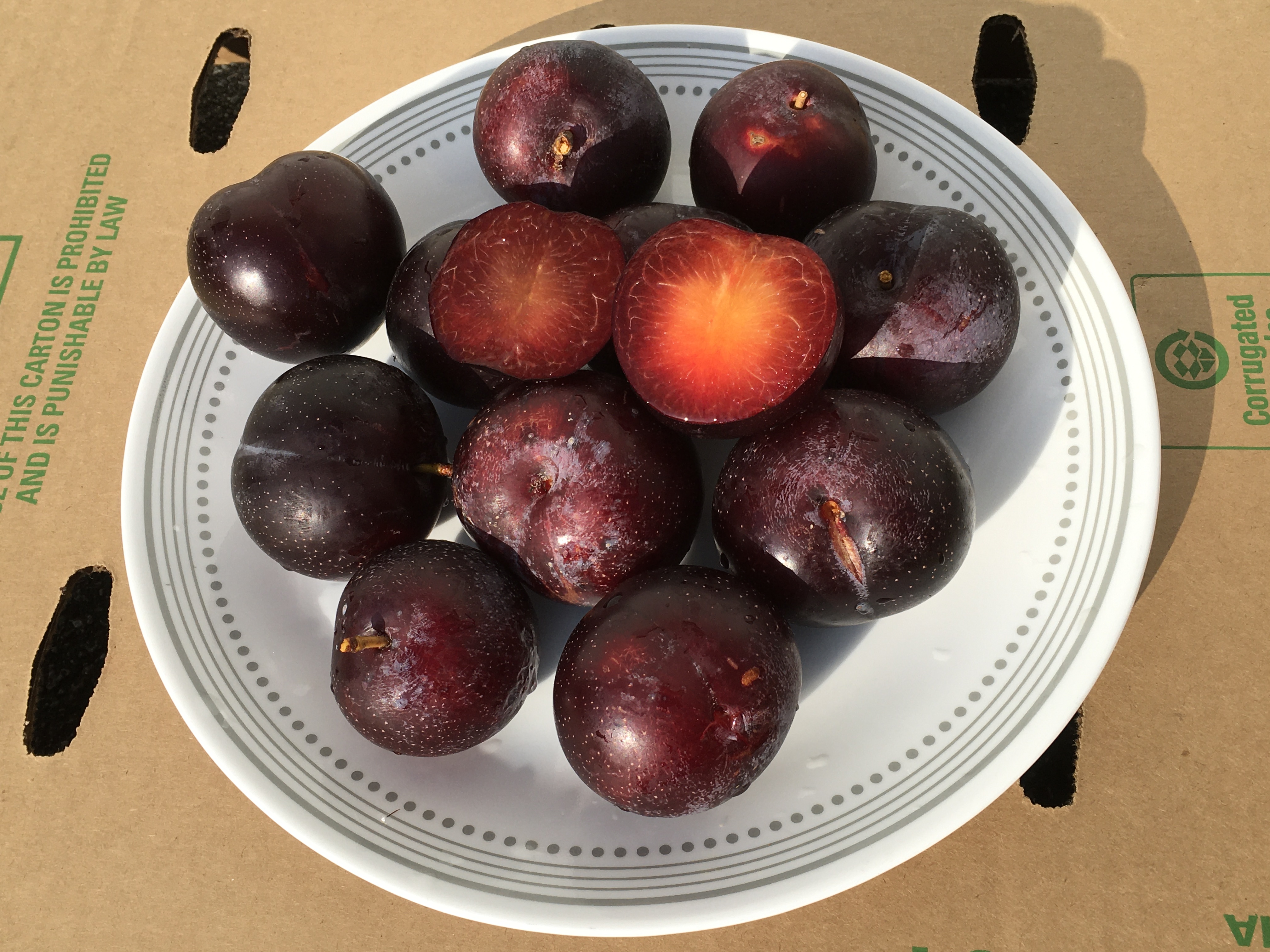 By the time I saw them, they were on the ground or fell byva light touch. Very ripe compared to firm Pearl plum @SMC_zone6 picked. Still tasty.
