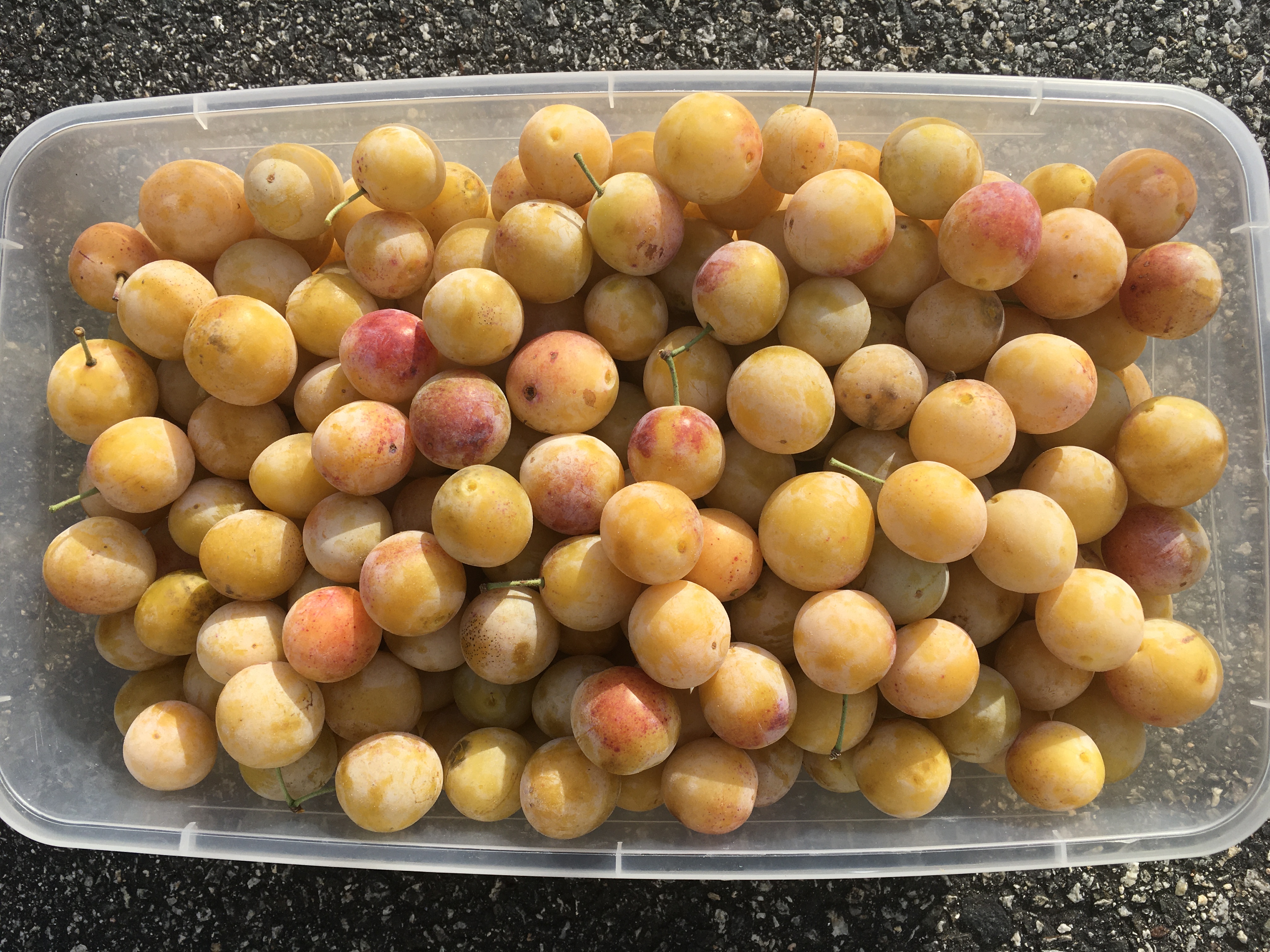 Last year was an off year of mirabelles. This year is an on year. I tried to thin but there are too many of them. So far I picked almost 50 lbs of them. Still quite a lot on the tree.
